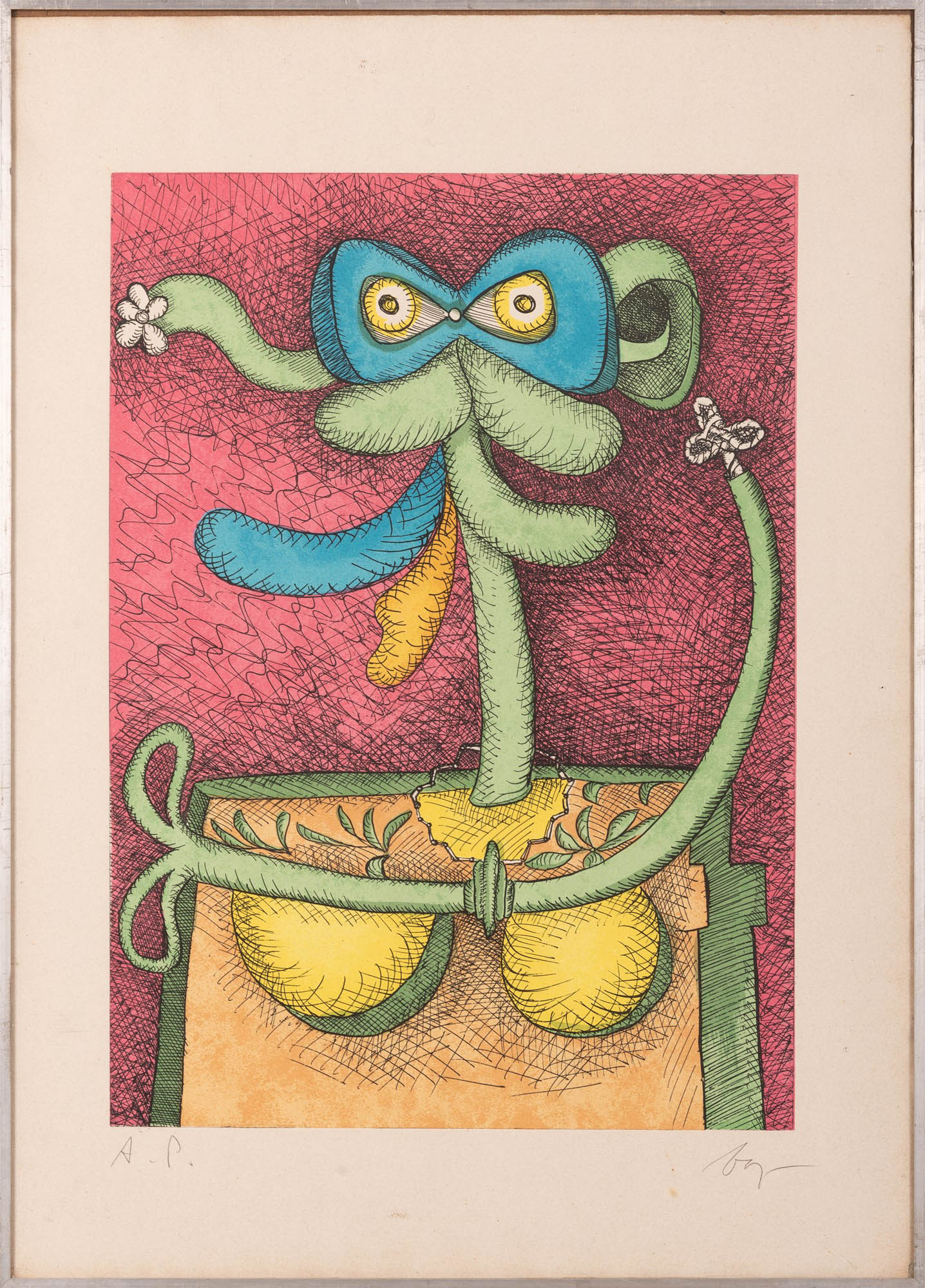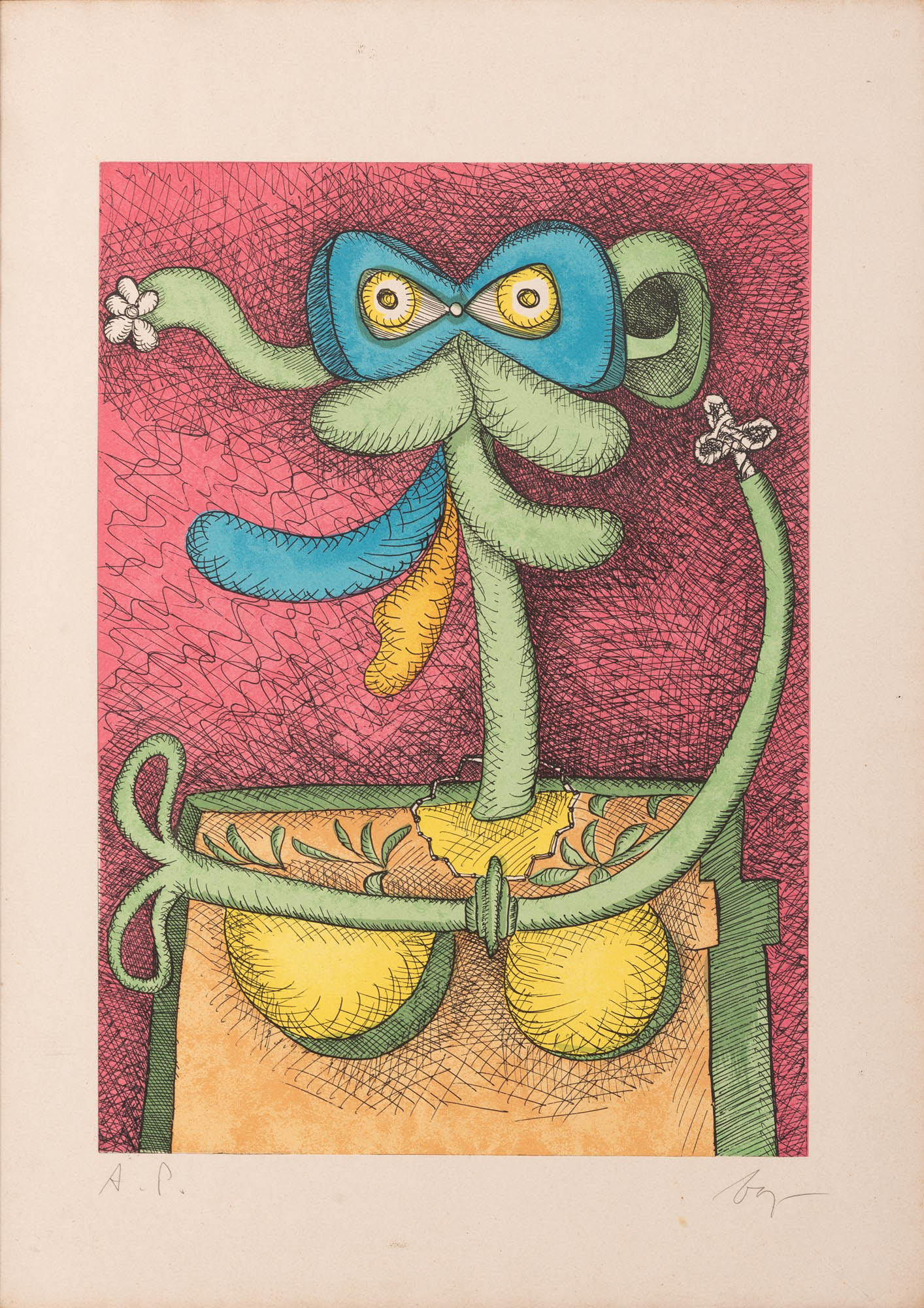 Enrico Baj (Milano, 1924 - Vergiate, 2003) Composizione floreale Serigrafia su carta 70x50 cm
