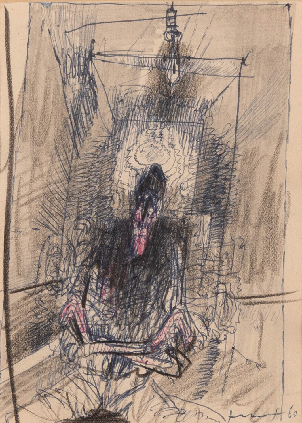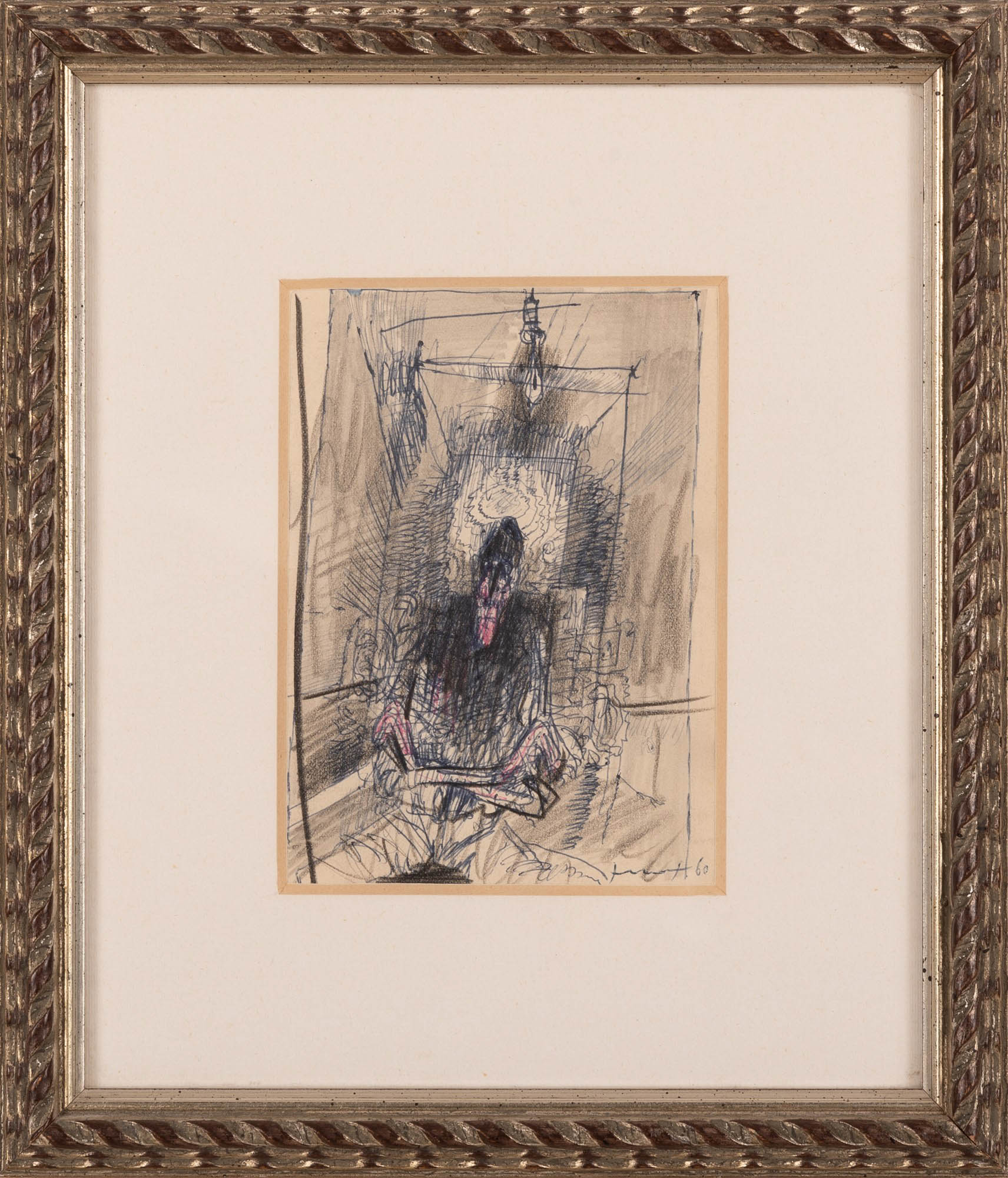 Giancarlo Ferroni (Livorno, 1927 - Bergamo, 2001) Autoritratto nello studio 1960 Mista su carta cm 14,5x10,5 e cm 28x24