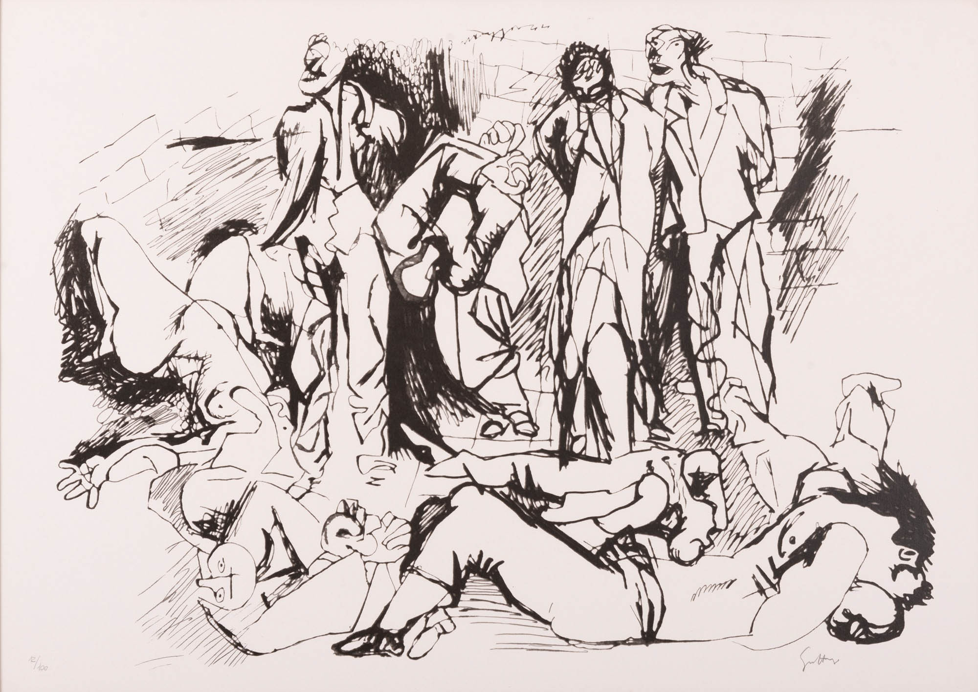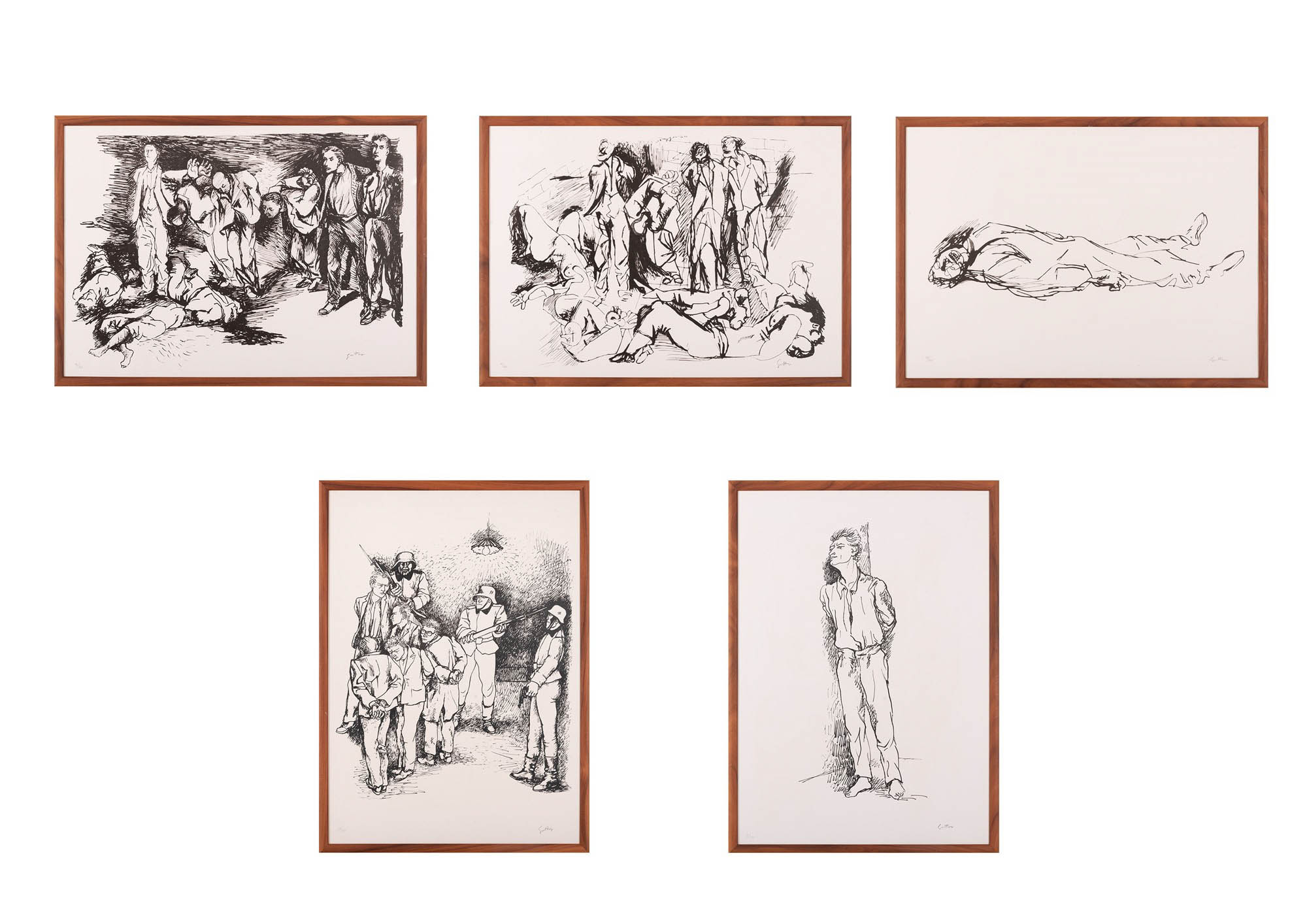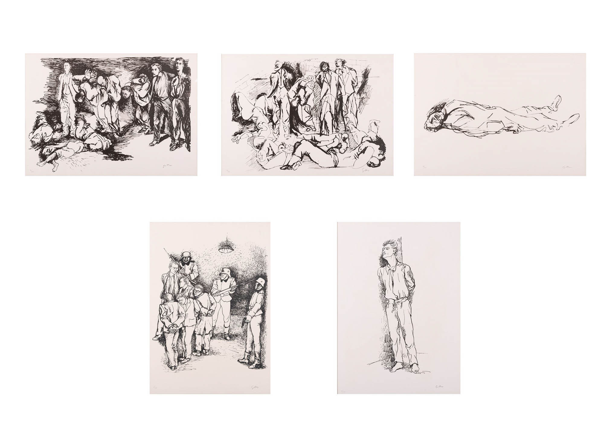 Renato Guttuso (Bagheria, 1911 - Roma, 1987) Lotto di 5 litografie "Gott mitt uns" 1981Litografia 50x70 cm