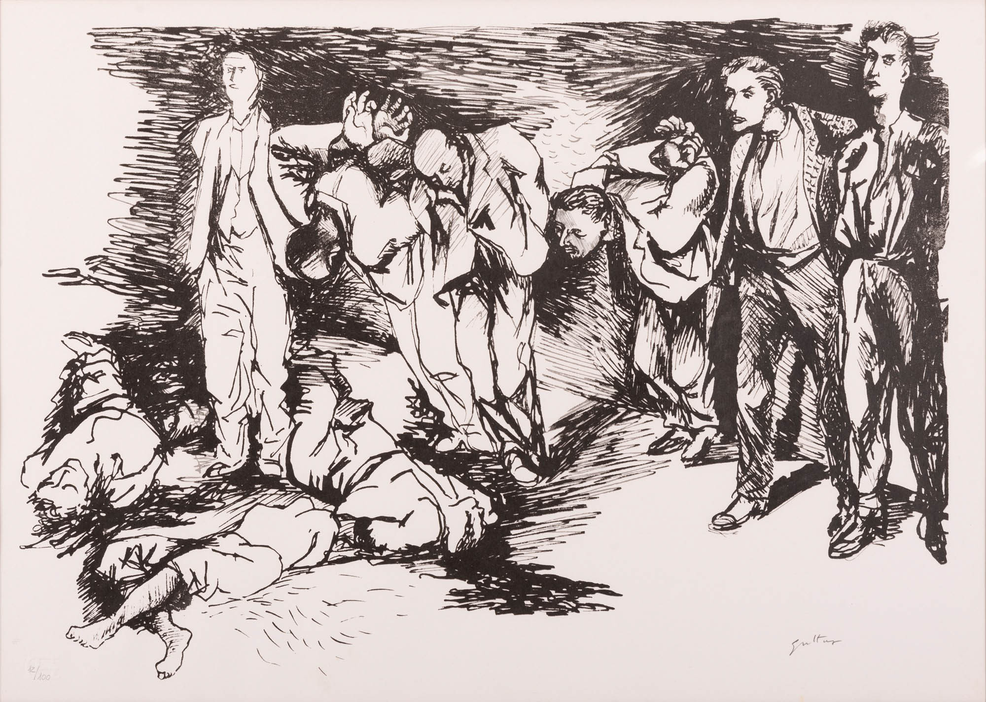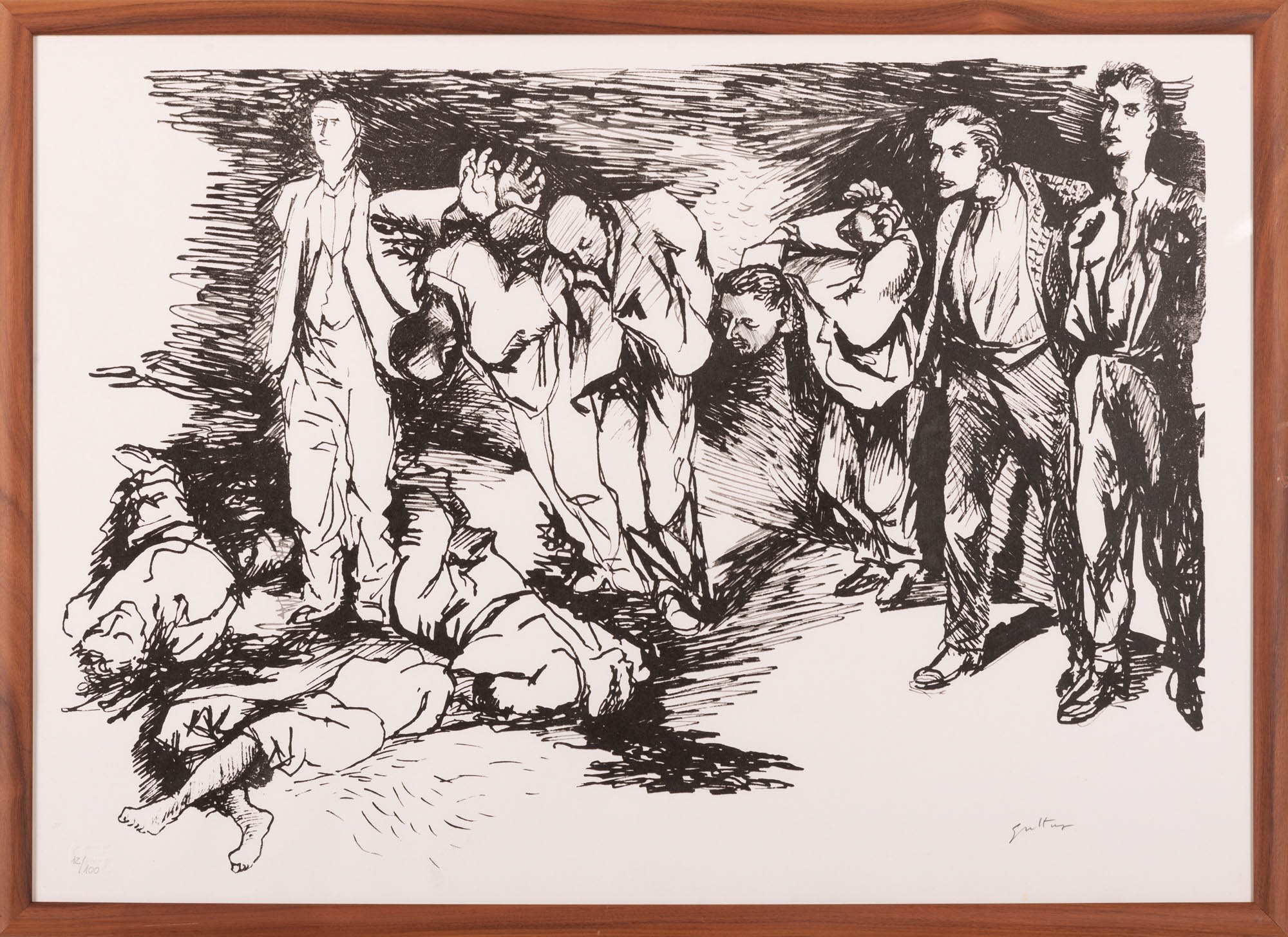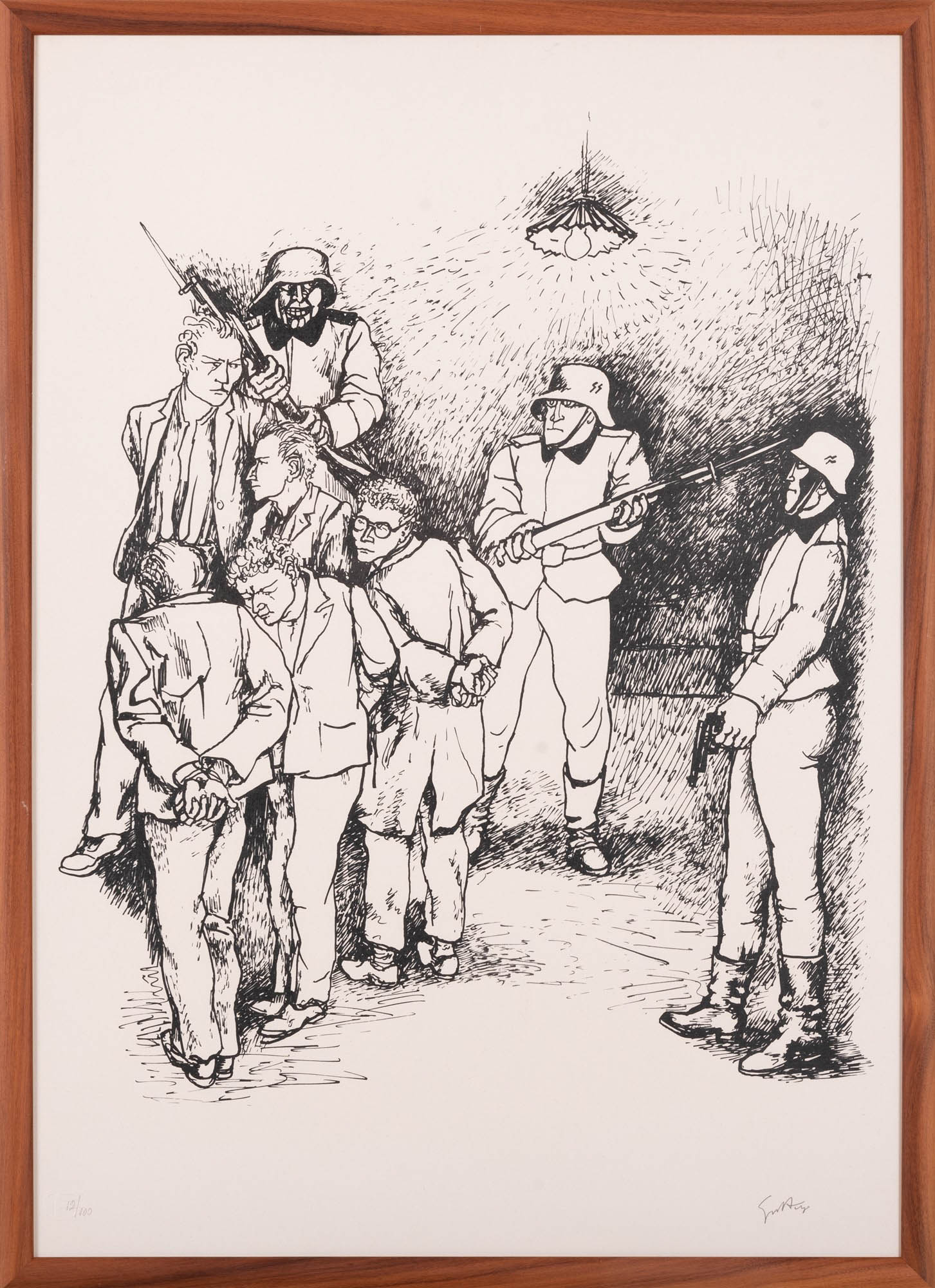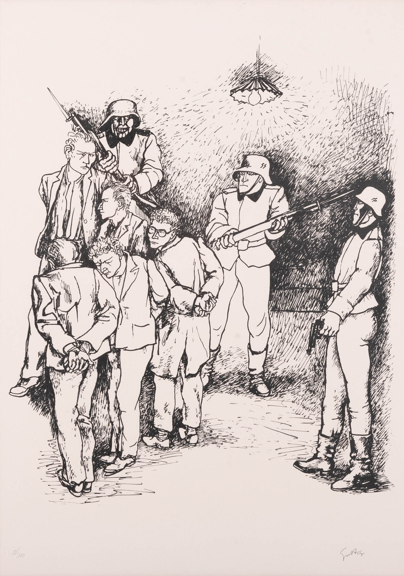 Lotto 134 | Renato Guttuso (Bagheria, 1911 - Roma, 1987) Lotto di 5 litografie "Gott mitt uns" 1981Litografia 50x70 cm