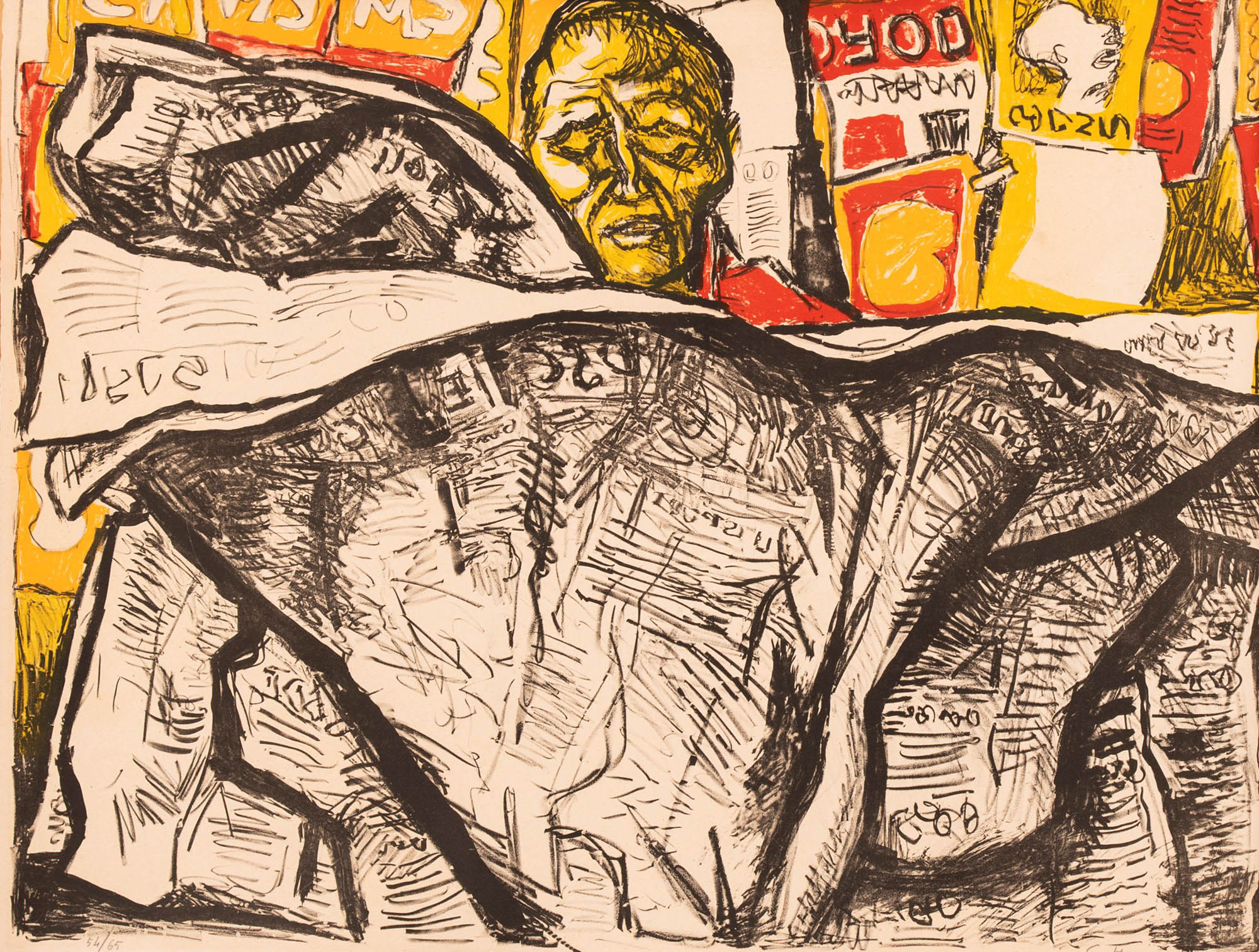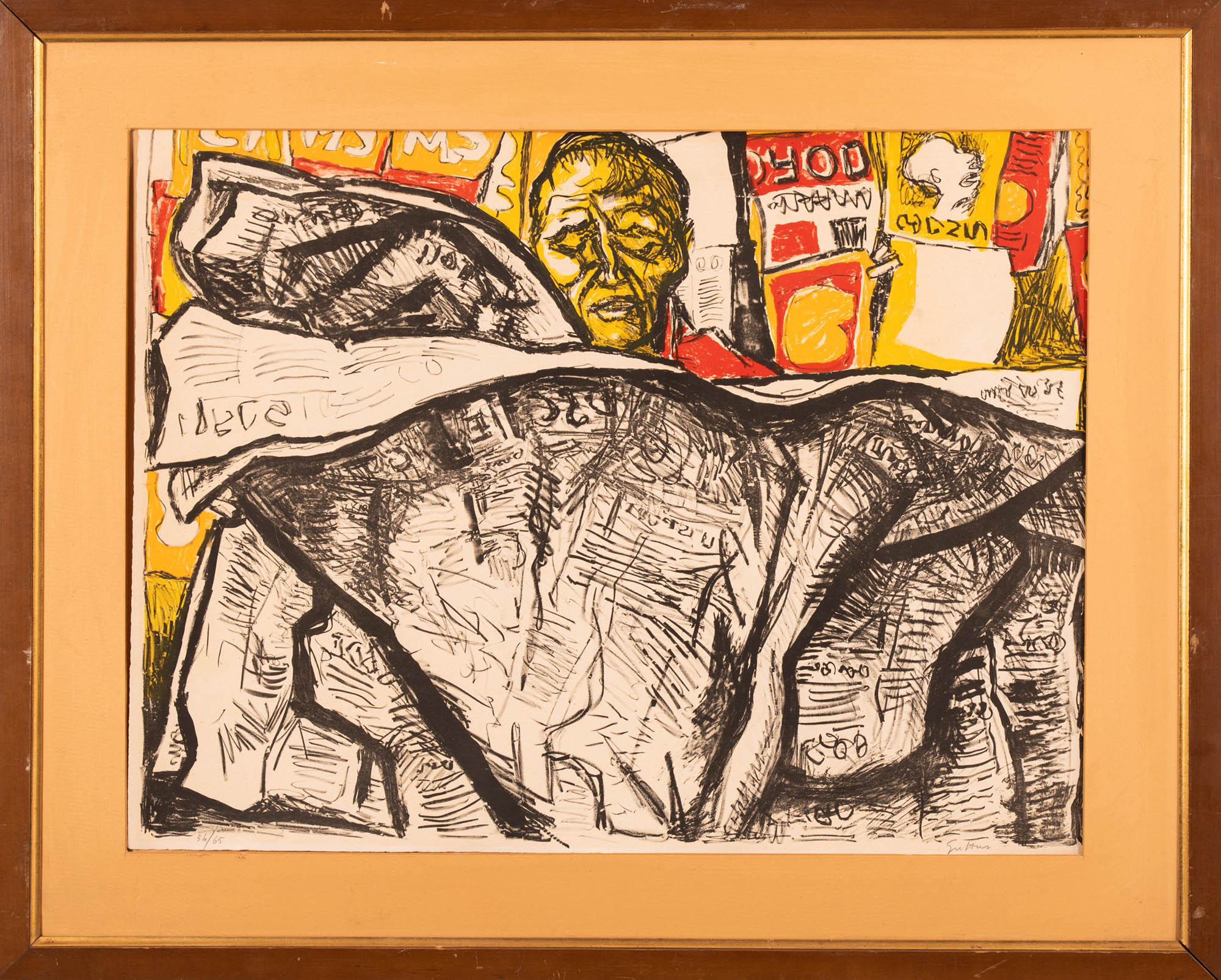 Renato Guttuso (Bagheria, 1911 - Roma, 1987) Uomo che legge il giornale litografia a colori cm 50x70 e cm 67x72
