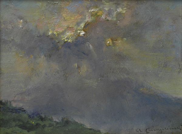 Alceste Campriani (Terni, 1848 - Napoli, 1933) EX ORIENTE LUX Olio su compensato, cm. 19,5x24,5 Firma in basso a destra. Sul verso: firma e titolo.