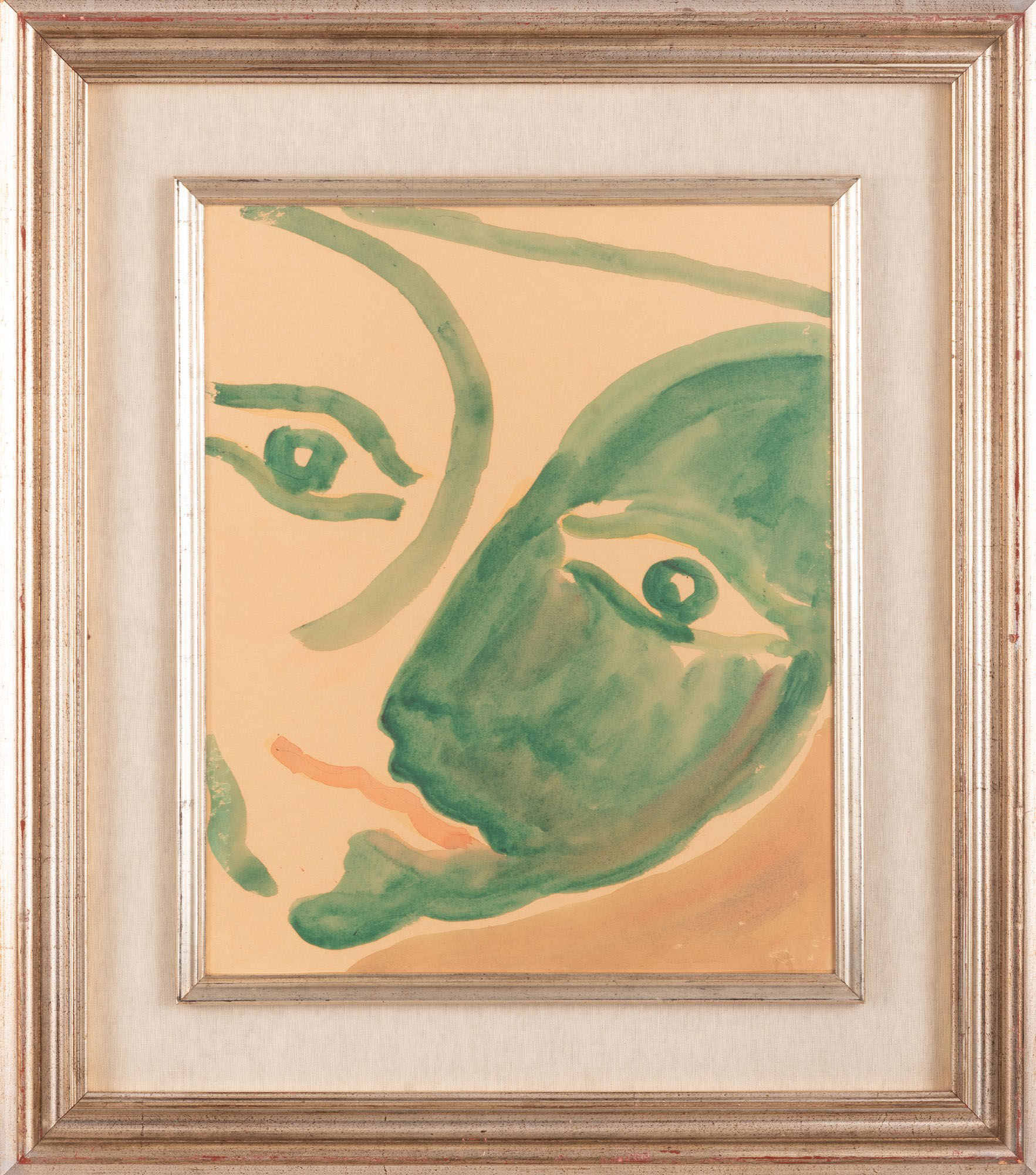 Virgilio Guidi (Roma, 1891 - Venezia, 1984) Testa verde Acquarello su carta 48x39,5 cm