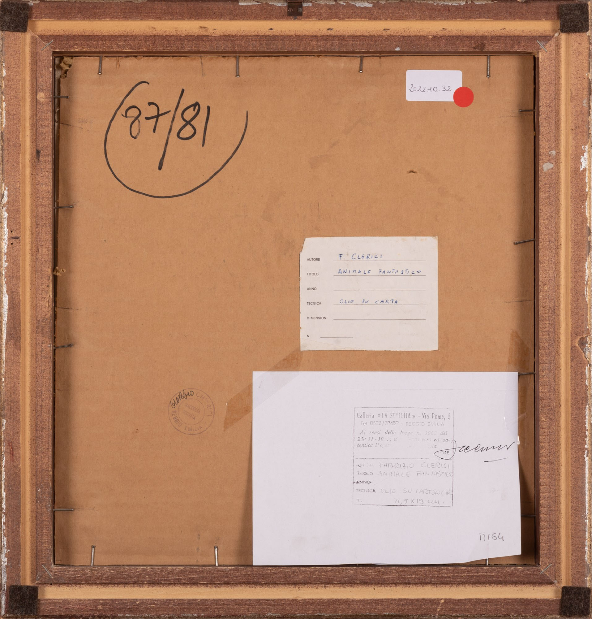 Fabrizio Clerici (Milano, 1913 - Roma, 1933) Animale fantastico Olio su carta cm 21x19 e cm 42x40