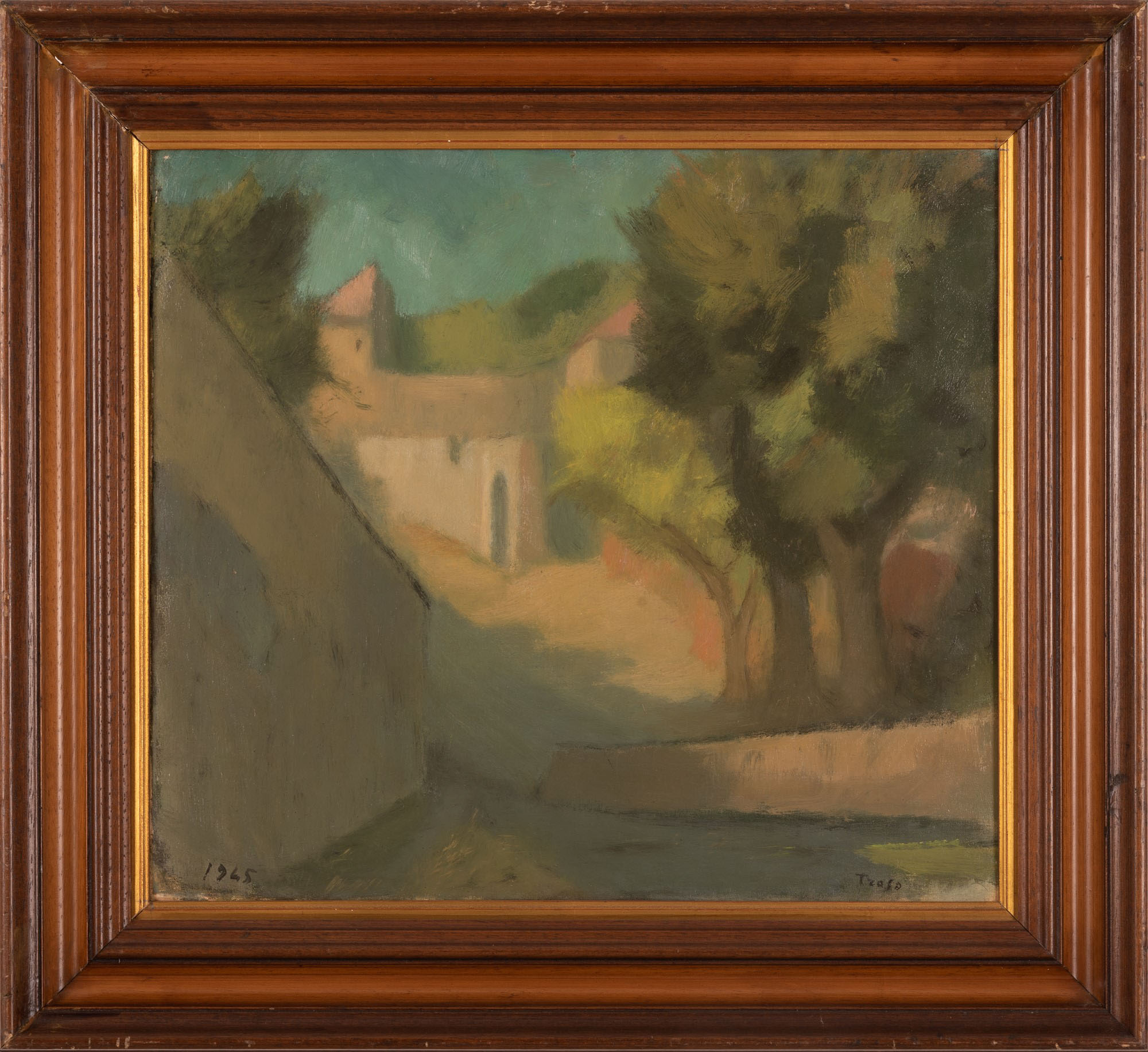 Fernando Troso (Lecce, 1910 - Roma, 1990) Paesaggio romano 1945 Olio su tela 40x45 cm e 55x60 cm