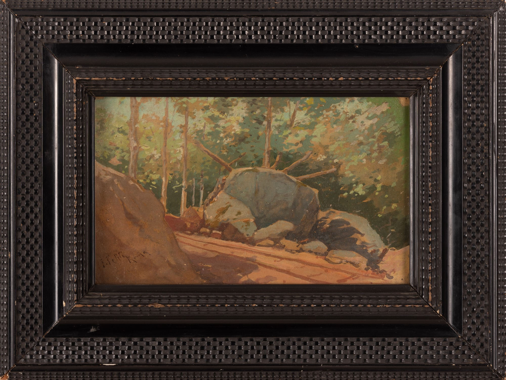 Filiberto Petiti (Torino, 1845 - Roma, 1924) Campagna romana Olio su cartone 20x30 cm e 34x45 cm