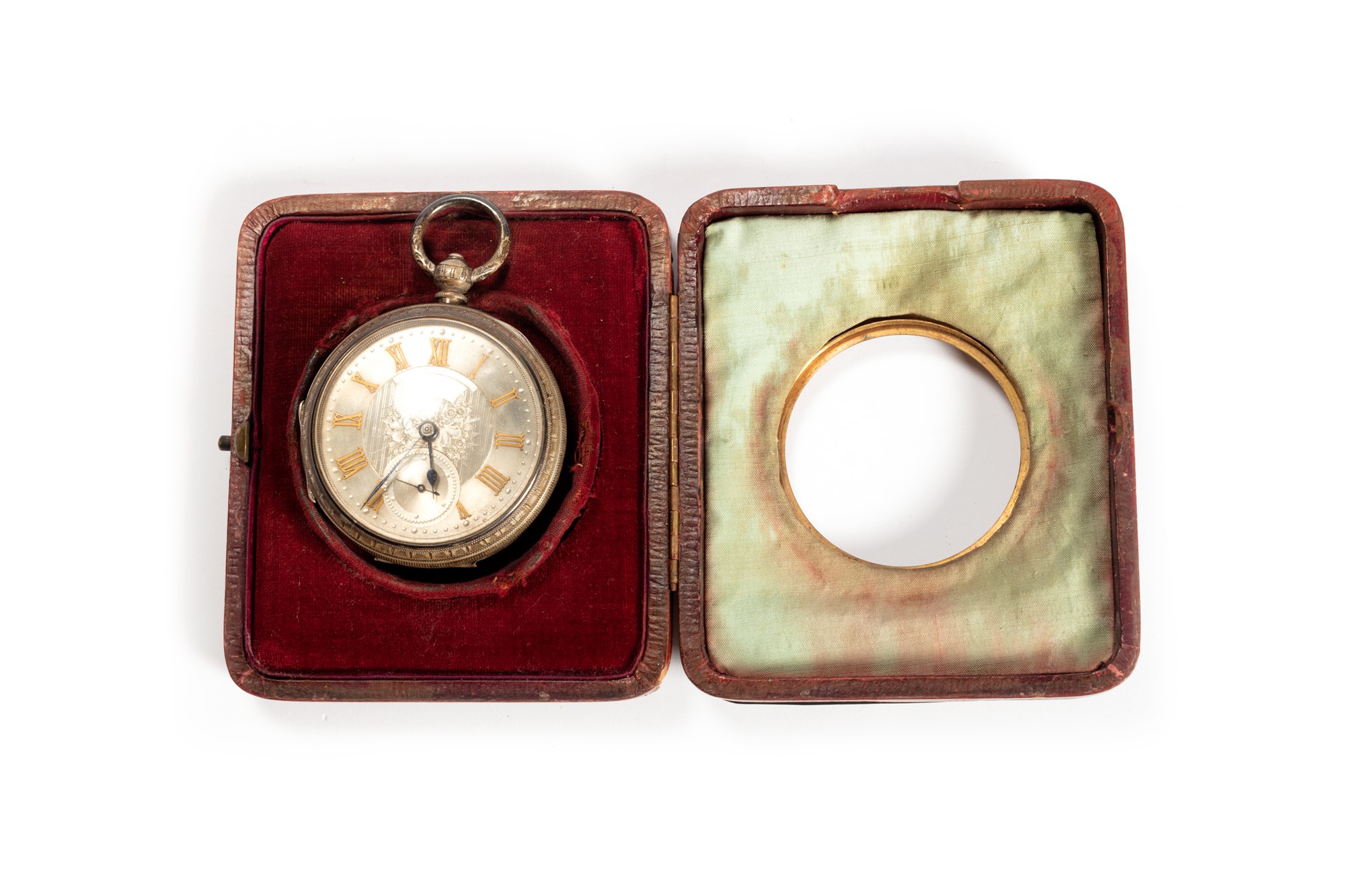 Lotto 319 | Orologio da tasca con porta orologio, in argento, Inghilterra secolo XIX