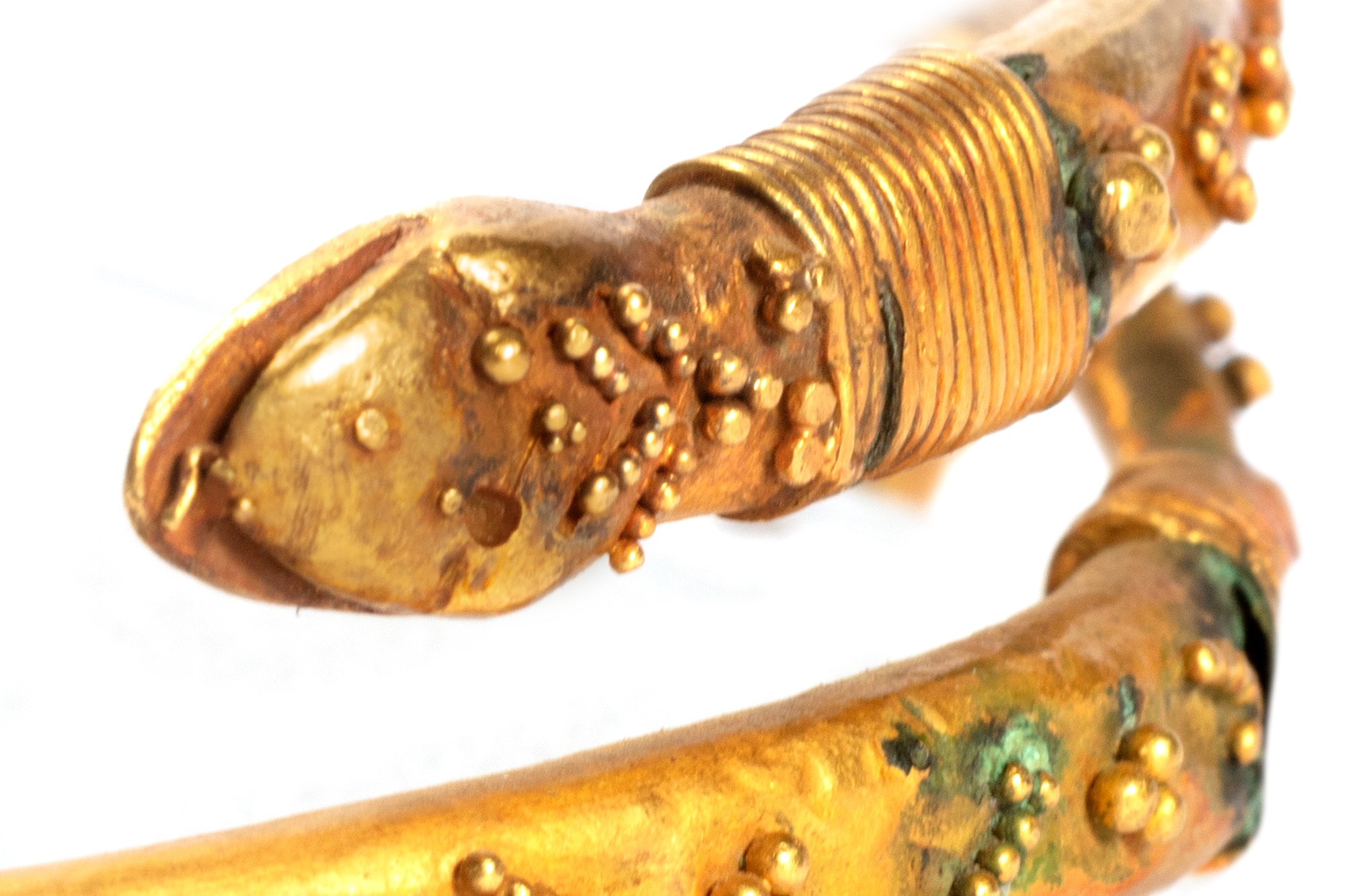 Lotto 344 | Antico bracciale rigido laminato in oro, a forma di serpente