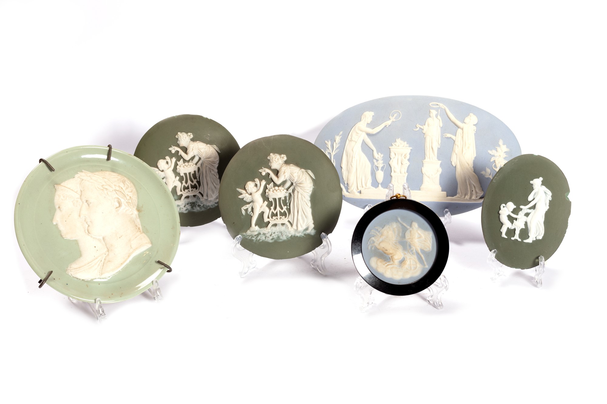 Lotto composto da sei placche in biscuit, inizi secolo XX