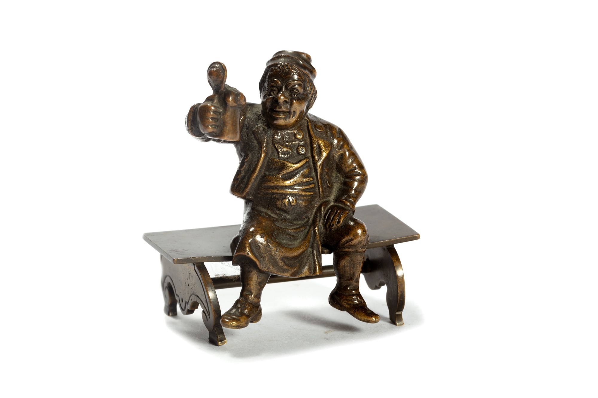 Scultura in bronzo raffigurante bevitore in osteria in stile fiammingo, secolo XIX
