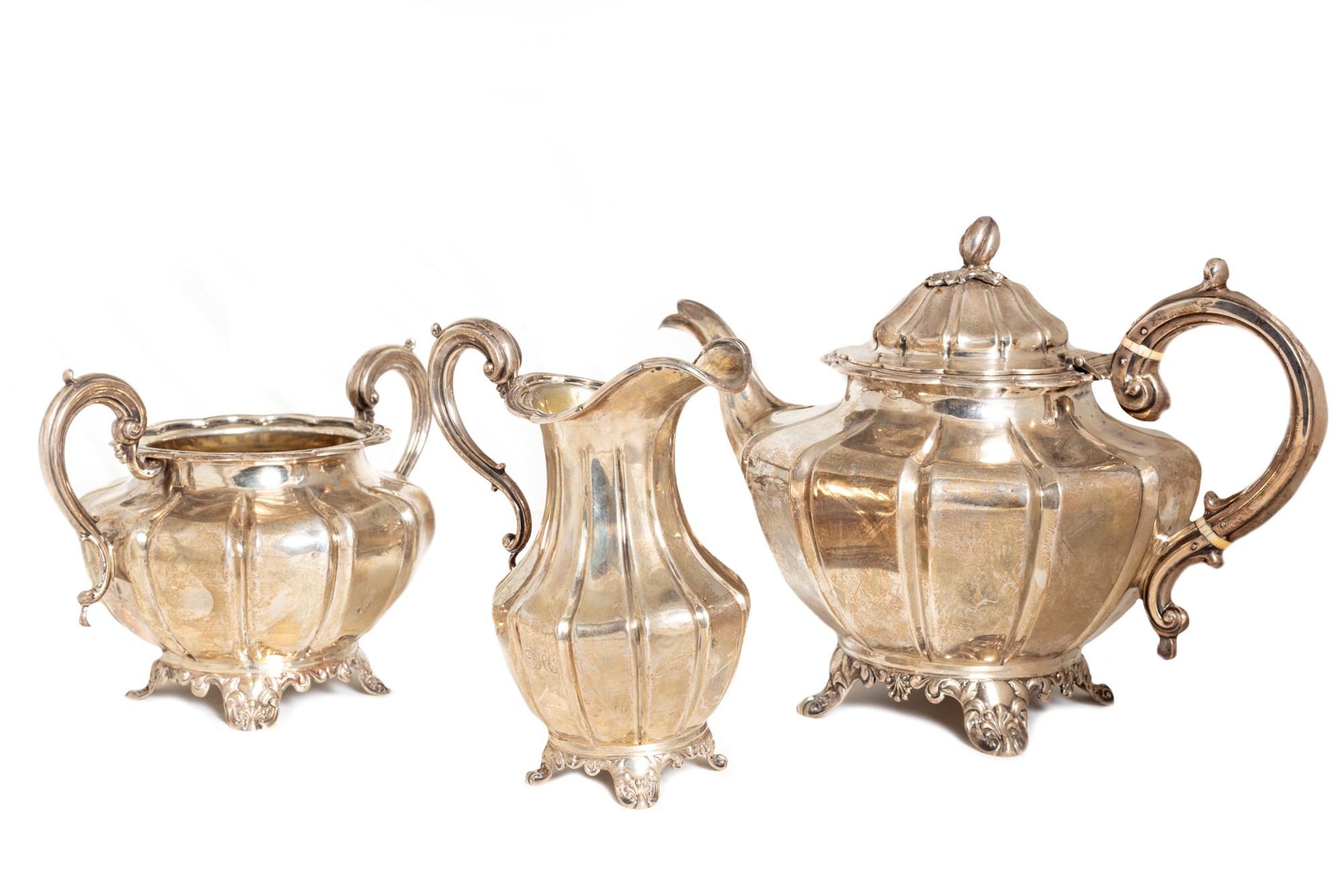 composto da teiera, lattiera e zuccheriera