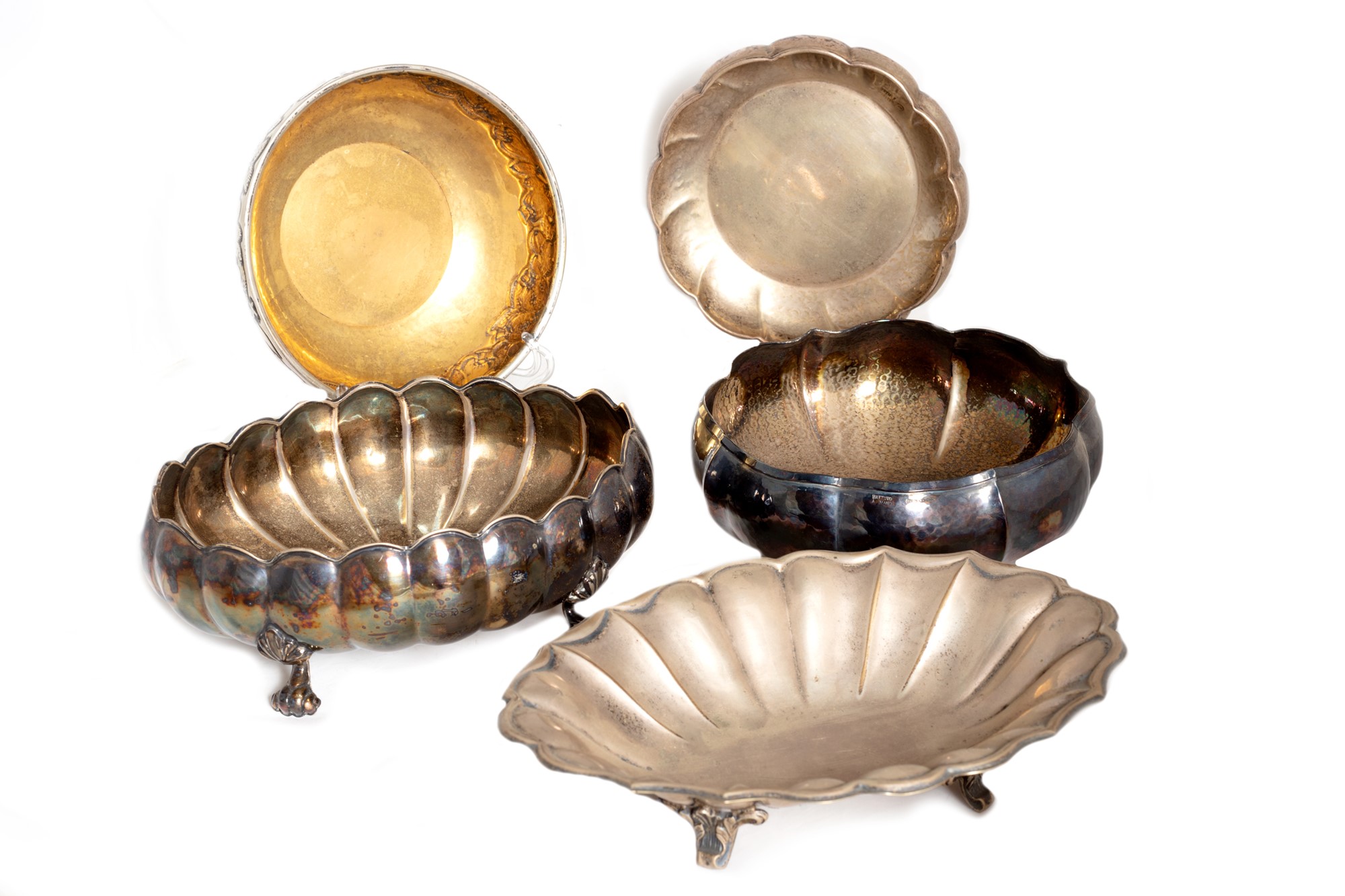 Lotto composto da cinque porta bon-bon in argento, secolo XX