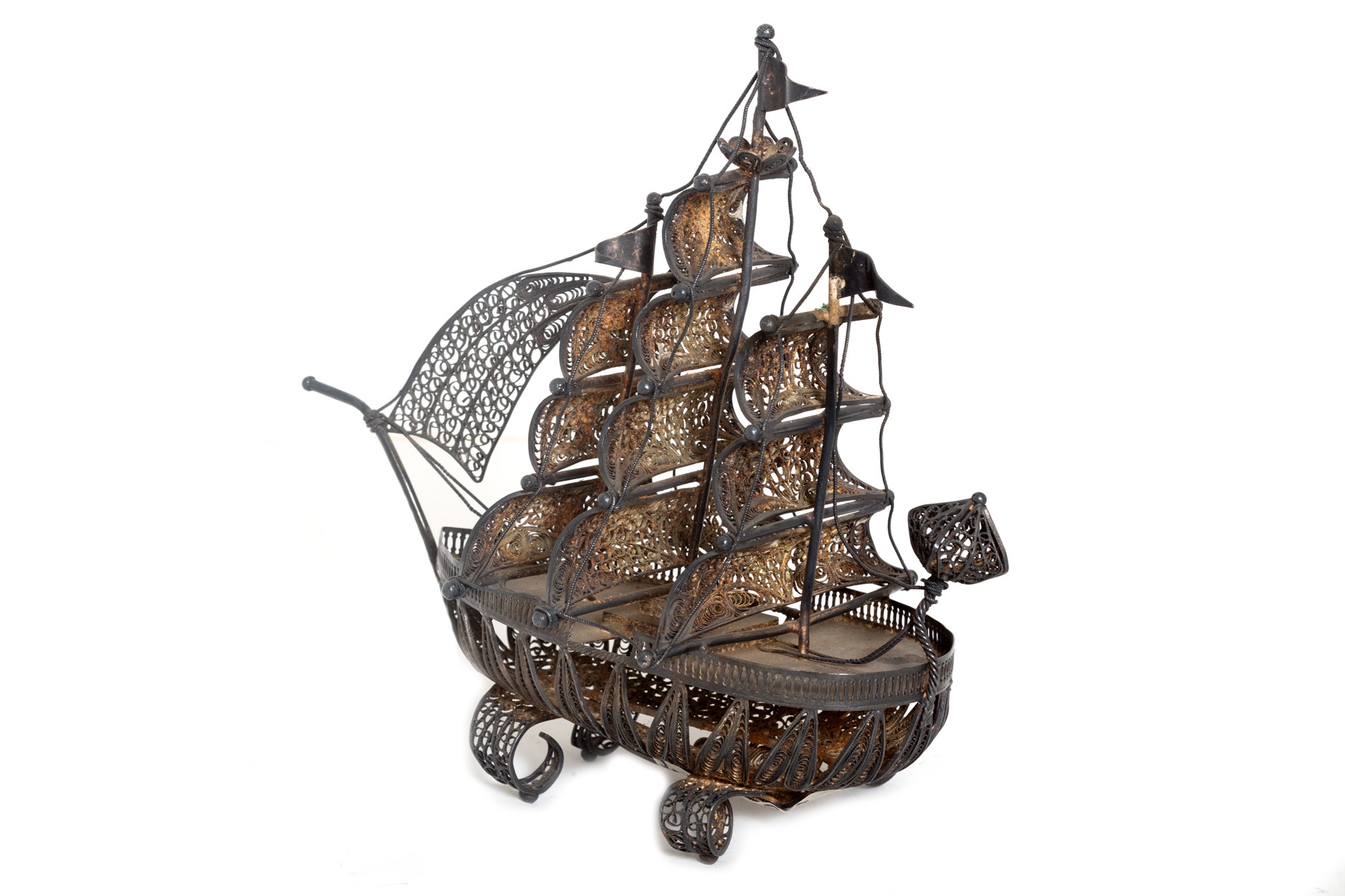 Caravella in filigrana d'argento, fine secolo XIX - inizio XX