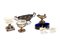una coppia di saliere in argento con motivo a ringhiera e contenitore in cristallo blu; una saliera in argento con vetro non pertinente; una in cristallo e metallo argentato; una a forma di conchiglia in argento; una coppia di piccole saliere in porcellana; una saliera più grande in argentouna coppia di saliere in argento con motivo a ringhiera e contenitore in cristallo blu; una saliera in argento con vetro non pertinente; una in cristallo e metallo argentato; una a forma di conchiglia in argento; una coppia di piccole saliere in porcellana; una saliera più grande in argento