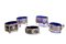 saliere in argento con decorazioni varie e contenitori: tre in vetro blu e due in cristallo blusaliere in argento con decorazioni varie e contenitori: tre in vetro blu e due in cristallo blu