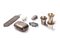 tre bicchierini russi datati 1888; una piccola scatola savonnette finemente incisa con motivi floreali; una fibbia; due portamonete; un braccialetre bicchierini russi datati 1888; una piccola scatola savonnette finemente incisa con motivi floreali; una fibbia; due portamonete; un bracciale