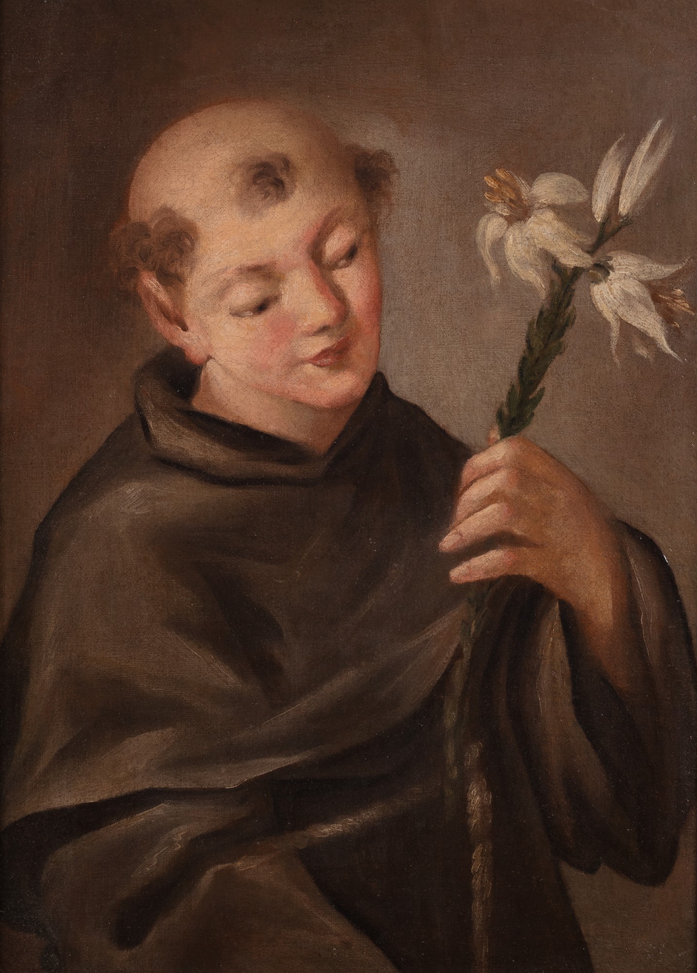 Scuola italiana, secolo XVII - Sant'Antonio da Padova con giglio