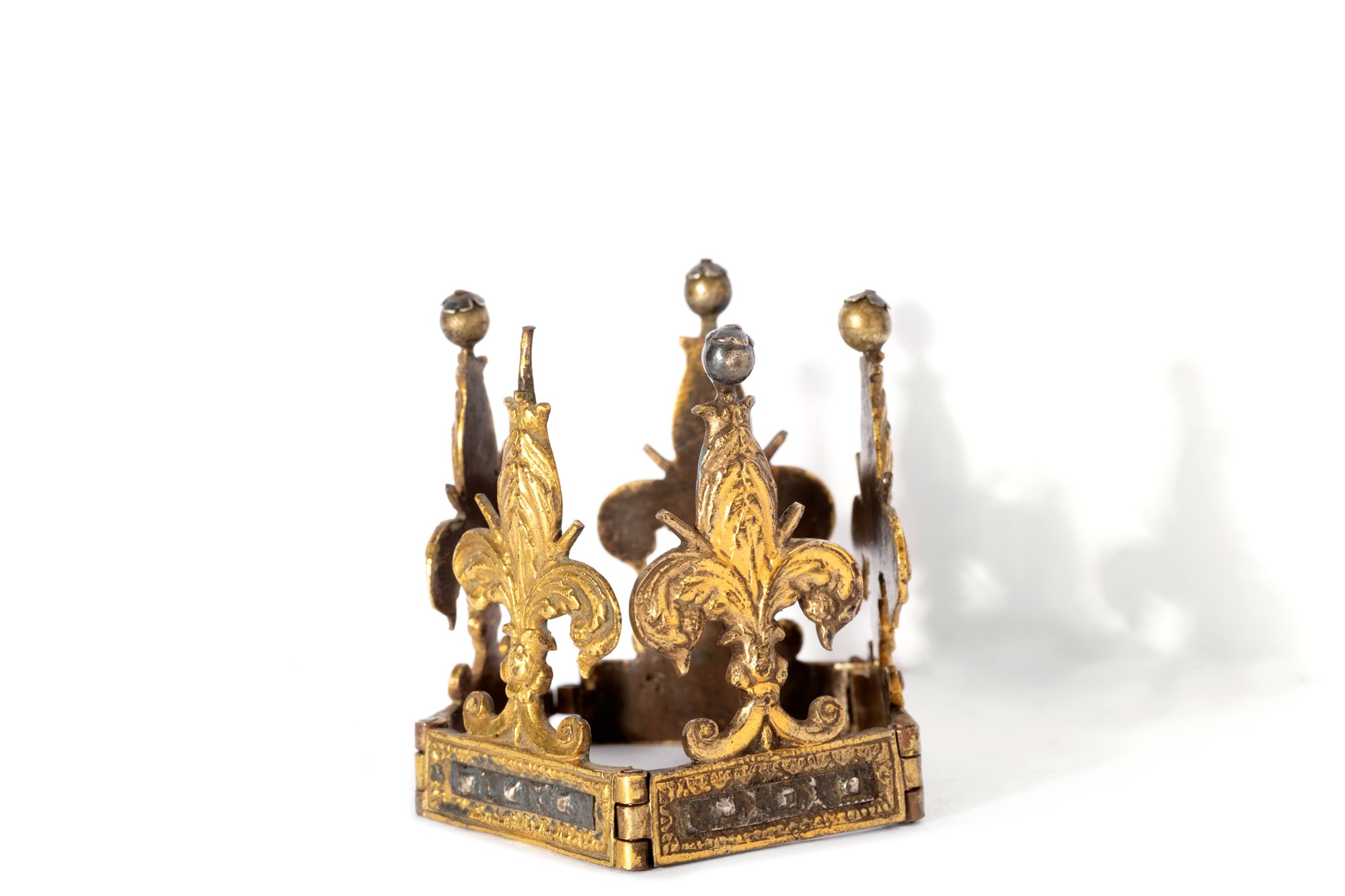 Corona in argento e bronzo dorato, con gigli (non completa), secolo XV