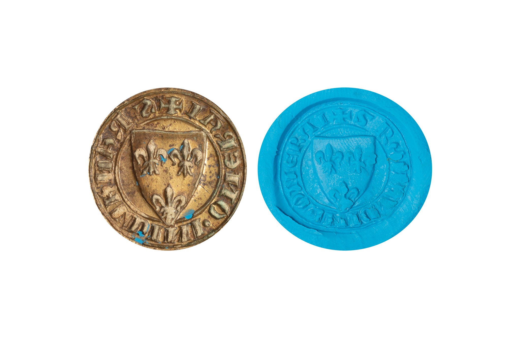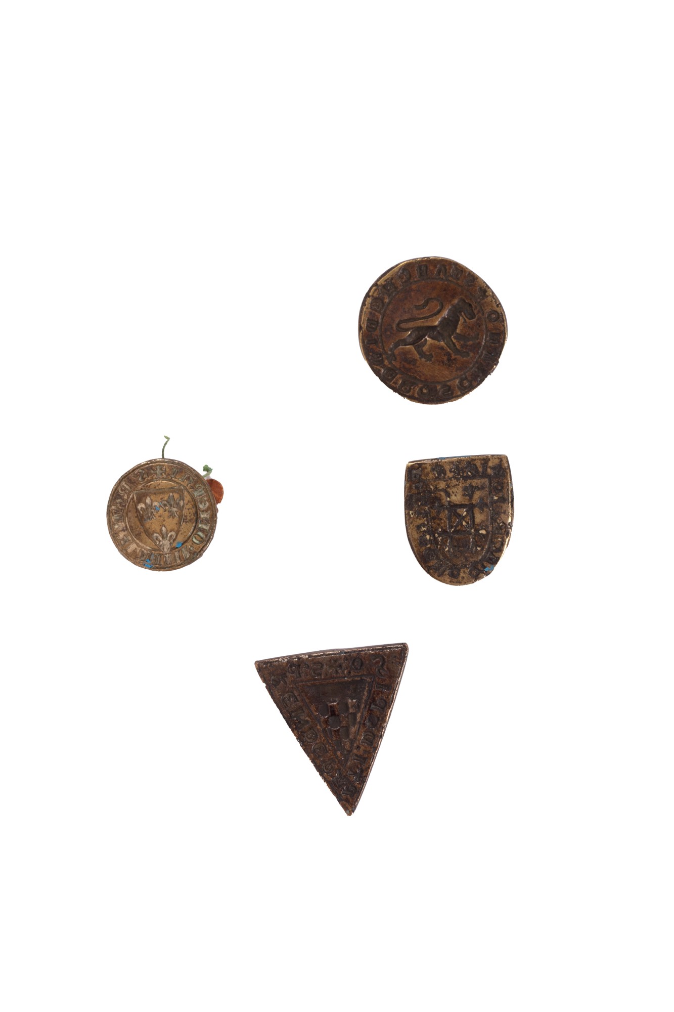 Lotto composto da quattro sigilli in bronzo, due circolari e due a scudo, con stemmi nobiliari, secoli XIII - XIV