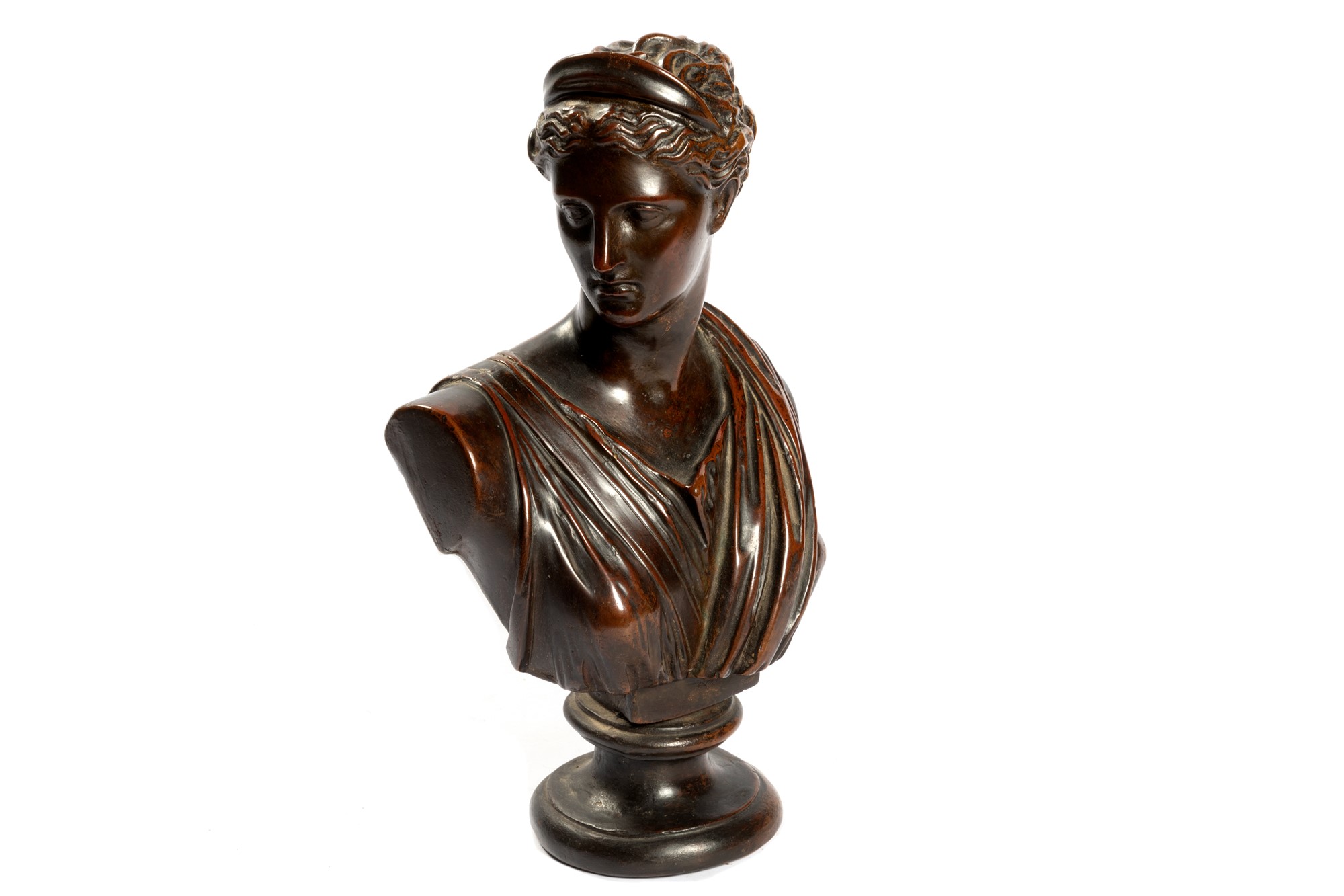 Scultura neoclassica in bronzo raffigurante busto di Diana, secolo XIX