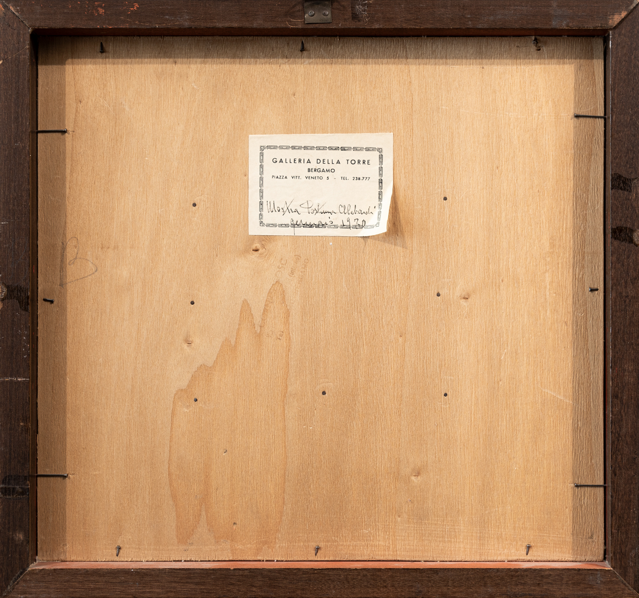 Etichetta della mostra personale tenutasi presso la Galleria della Torre (BG), 1970 al retro