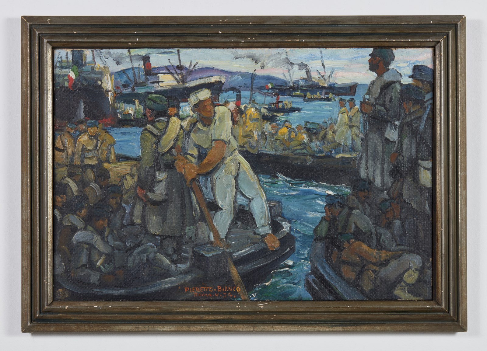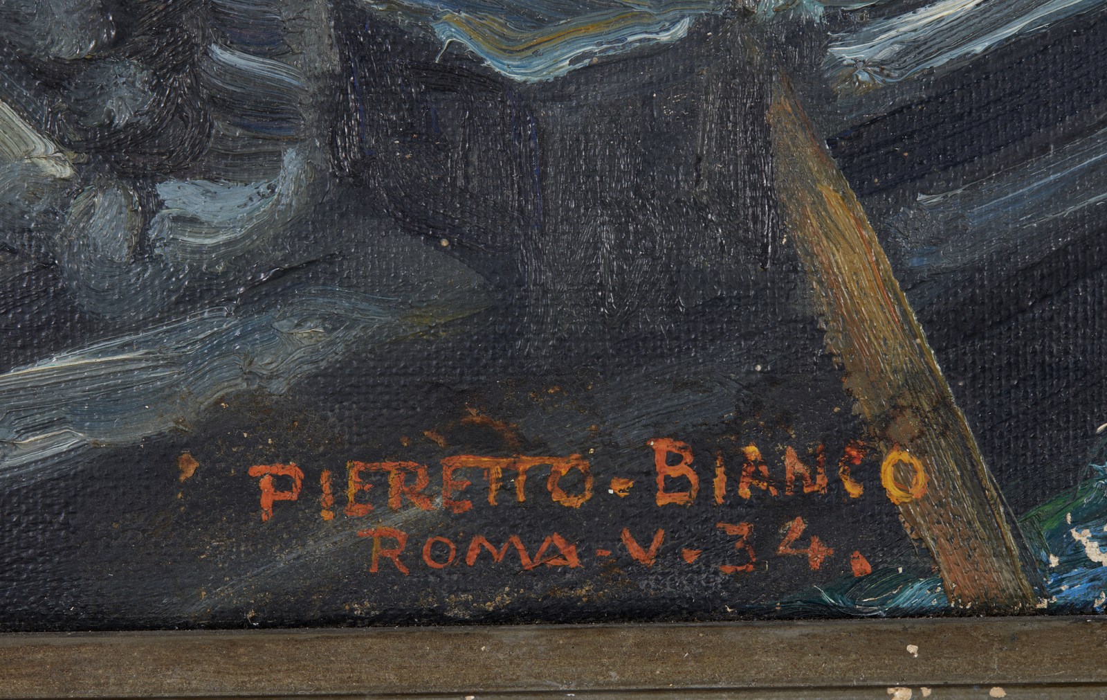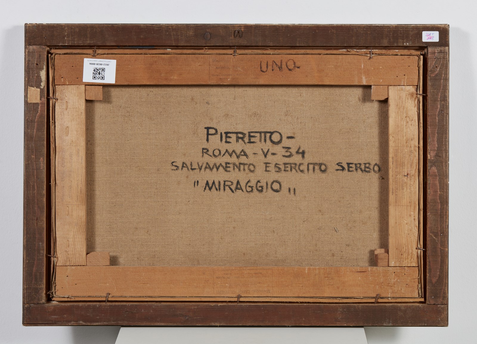 BIANCO PIERETTO (1875 - 1937) Miraggio. 1934. Olio su tela . Cm 60,00 x 41,00. Firma e anno in basso al centro. Al retro titolo, firma e anno. Pubblicazione: Dalla Biennale a Caruso - Pieretto Bianco a cura di Enrico Lucchese e Emanuela Rollandini, Tipografia Piave Editore, tav.4. Difetti. Cornice presente