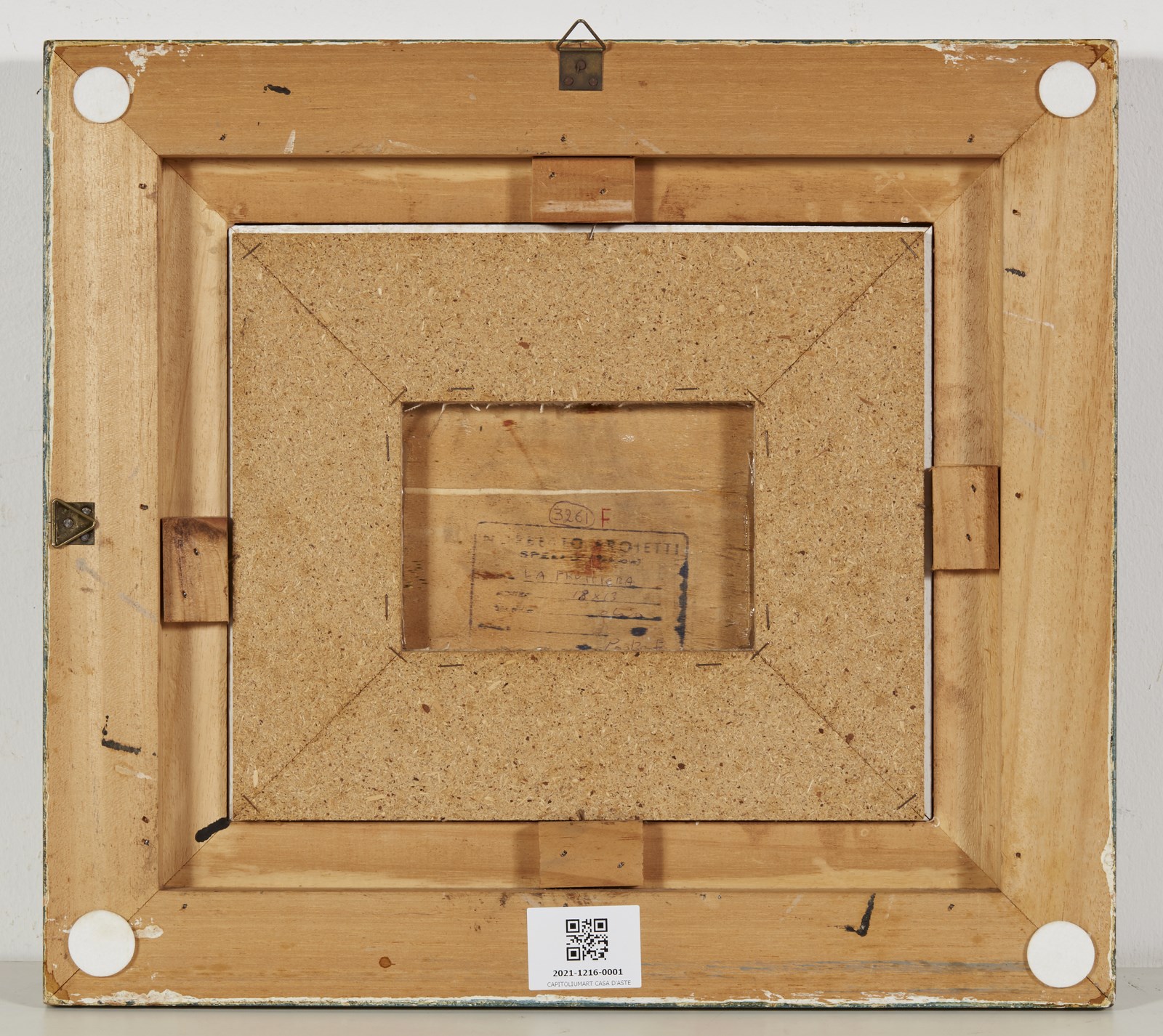 PROIETTI NORBERTO (1927 - 2009) La fruttiera. Olio su tela . Cm 18,00 x 13,00. Firma in basso a destra. Al retro timbro dell'artista. Autentica dell'artista su fotografia. Certificato di provenienza Centro d'arte Engema. . Cornice presente