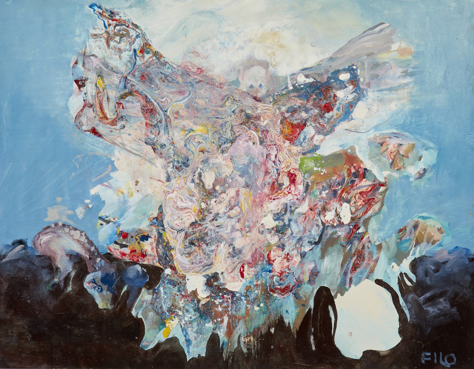 FILIPOVITCH LITVINOF DIMITRI (n. 1919) Senza titolo. 1974. Tecnica mista su carta. Cm 65,00 x 50,00. Firma in basso a destra. Anno al retro. Difetti. Cornice presente