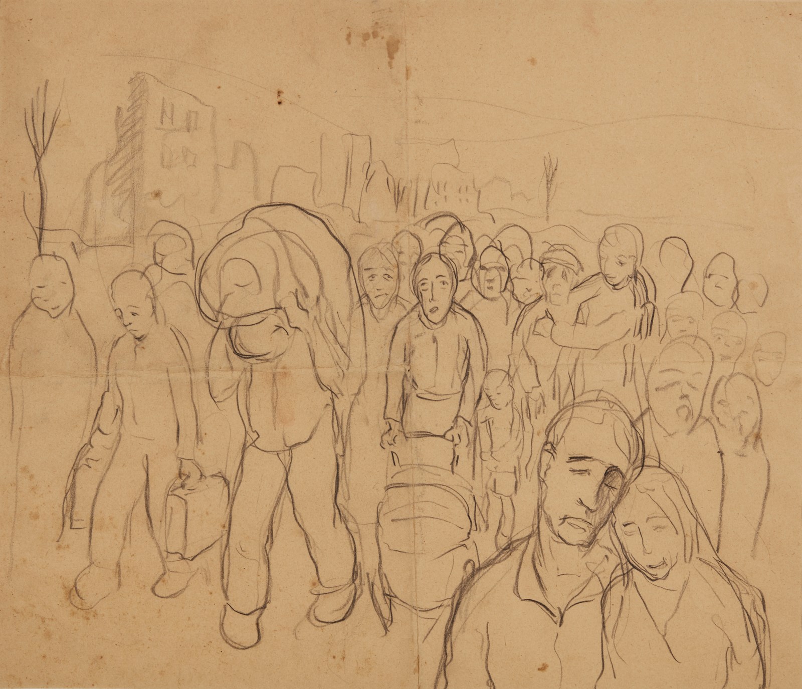 SCANAVINO EMILIO (1922 - 1986) Senza titolo. 1942. Grafite su carta. Cm 45,00 x 40,00. Certificato di provenienza e garanzia Studio d'arte Borromeo, Senago. Opera registrata presso l'Archivio Emilio Scanavino. Difetti. Cornice presente