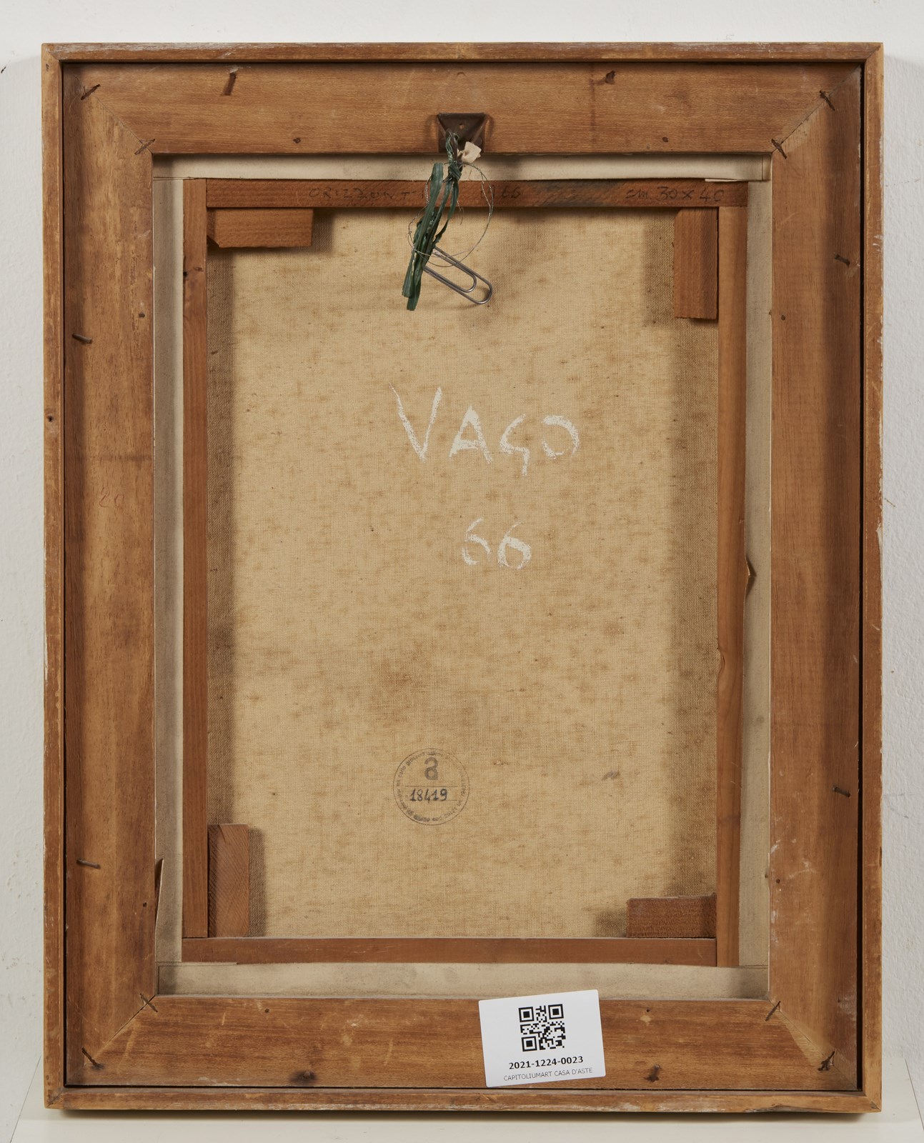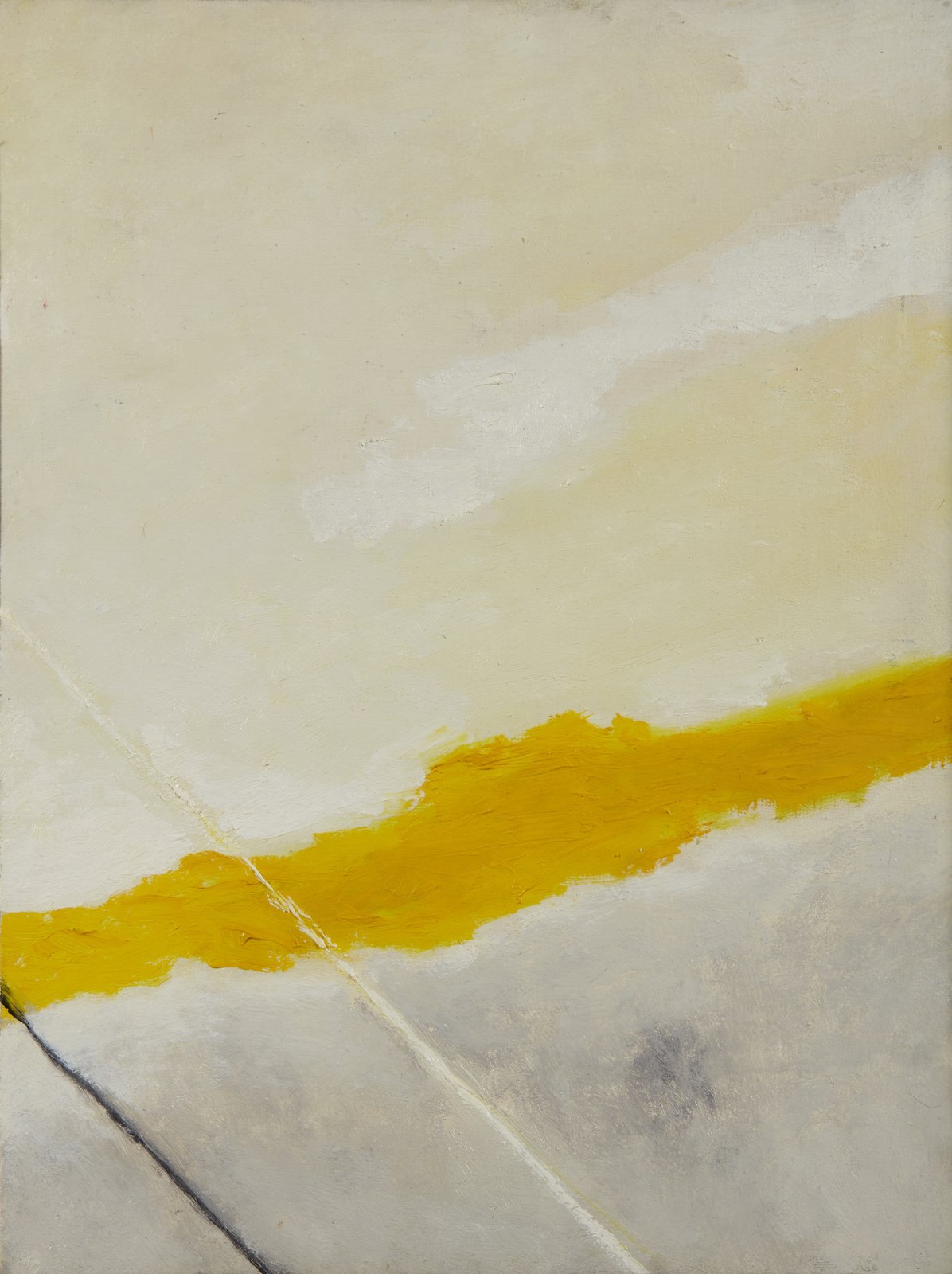 VAGO VALENTINO (n. 1931) Orizzonti. 1966. Olio su tela . Cm 29,00 x 39,00. Al retro firma e anno. Difetti. Provenienza: Collezione Lana, Milano. Cornice presente