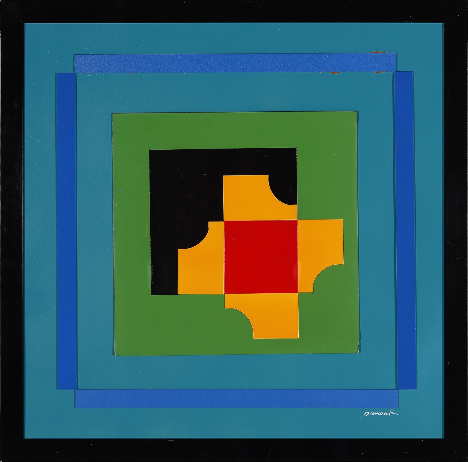 PIEMONTI LORENZO (n. 1935) D'Angolo. 1970. Cartoni fustellati. Cm 70,00 x 70,00. Firma in basso a destra. Al retro firma, anno e cartiglio descrittivo dell'artista. Certificato di provenienza Arte Investimenti, Milano. Cornice presente