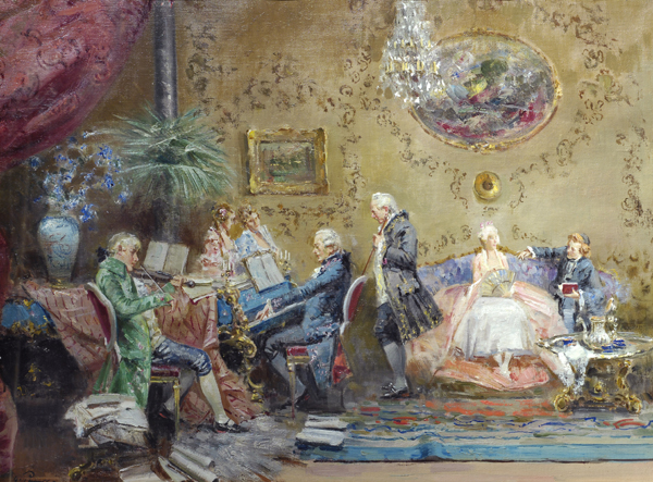 Giovanni Panza (Napoli, 1894 - 1989) SCENA SETTECENTESCA Olio su tela, cm. 60x78 Firma in basso a sinistra.