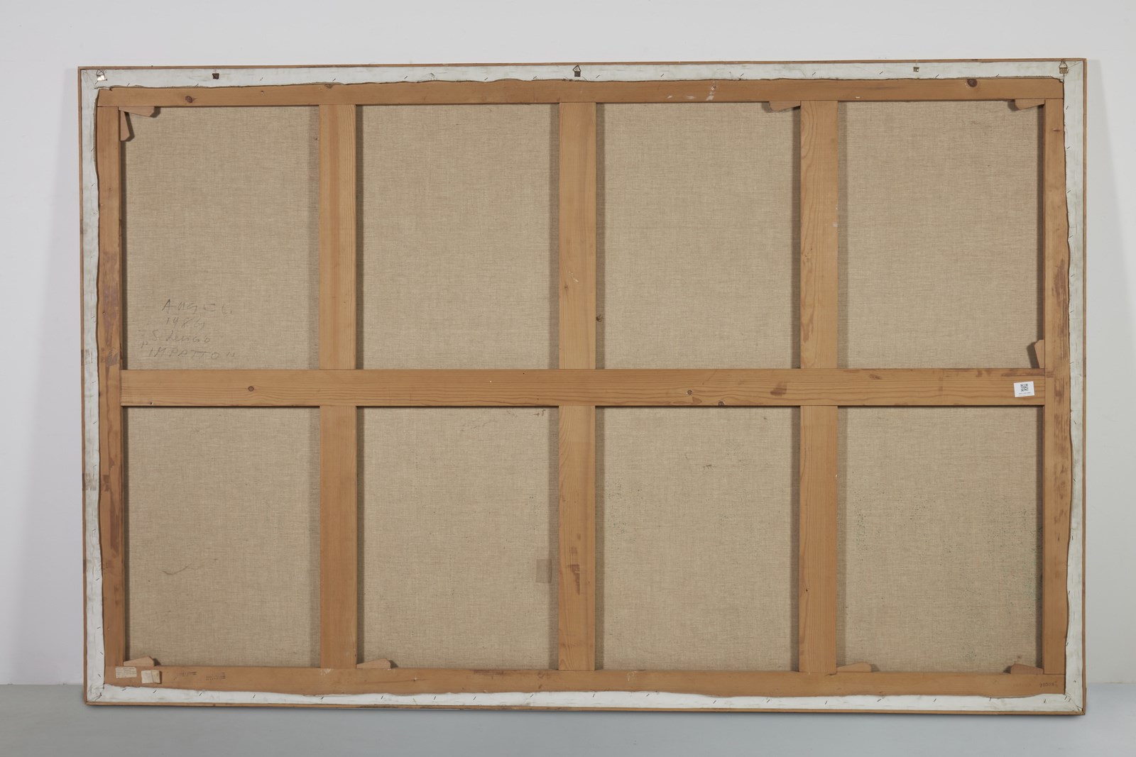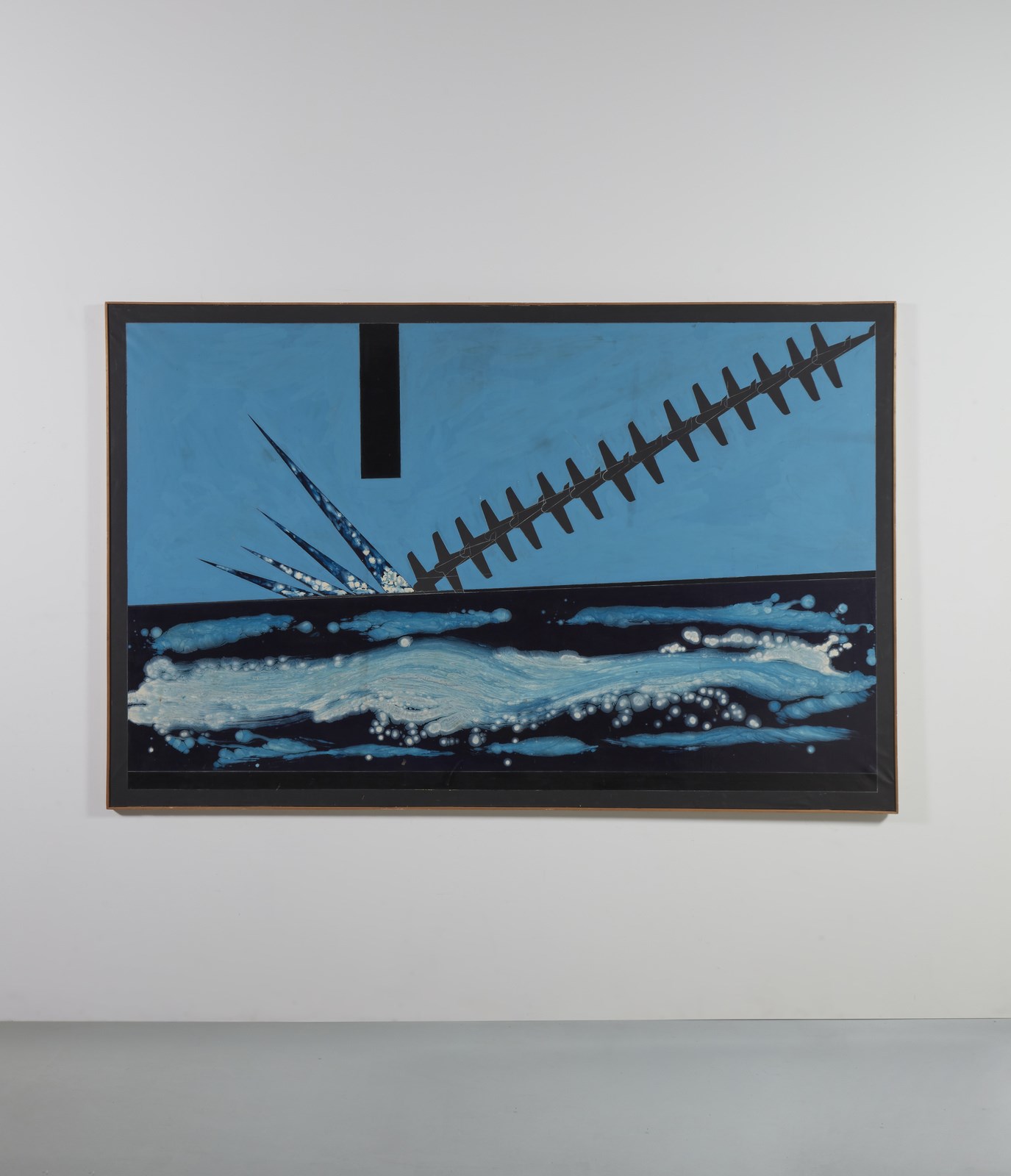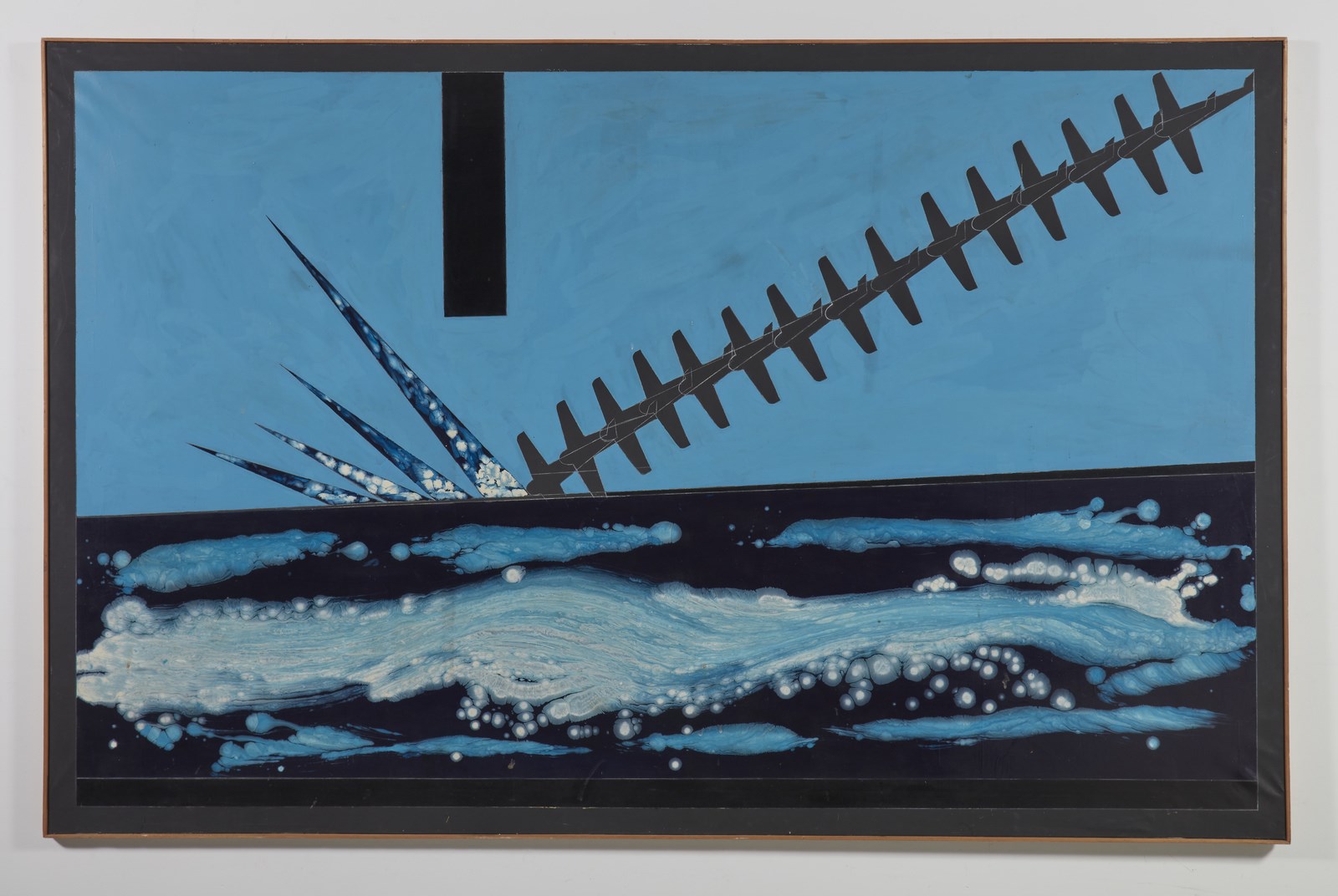 ANGELI FRANCO (1935 - 1988) Impatto. 1984. Smalti su tela. Cm 280,00 x 180,00. Al retro titolo, firma e anno. Opera archiviata presso l'Archivio Franco Angeli, Roma, come da documentazione fotografica allegata all'opera riportante il relativo numero d'inventario.Difetti.