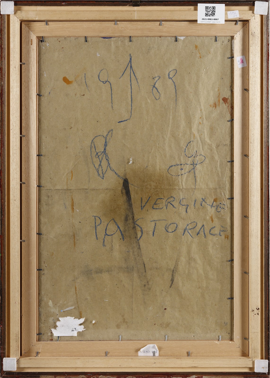 CECCOBELLI BRUNO (n. 1952) Vergine pastorale. Tecnica mista su carta. Cm 38,00 x 59,00. Al retro titolo, firma e anno. Cornice presente