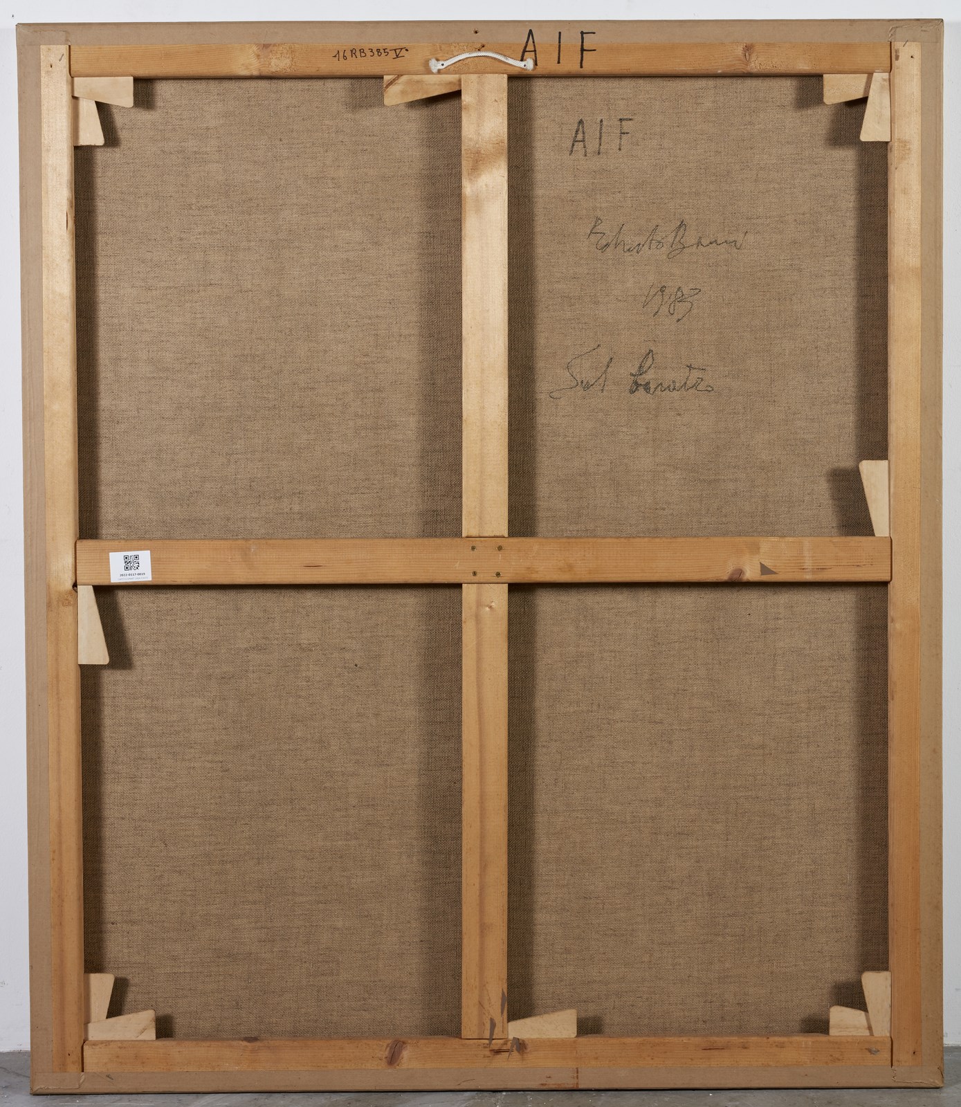 BARNI ROBERTO (n. 1939) Sul baratro. 1983. Tecnica mista su carta su tela. Cm 120,00 x 140,00. Al retro titolo, firma e anno. Difetti.
