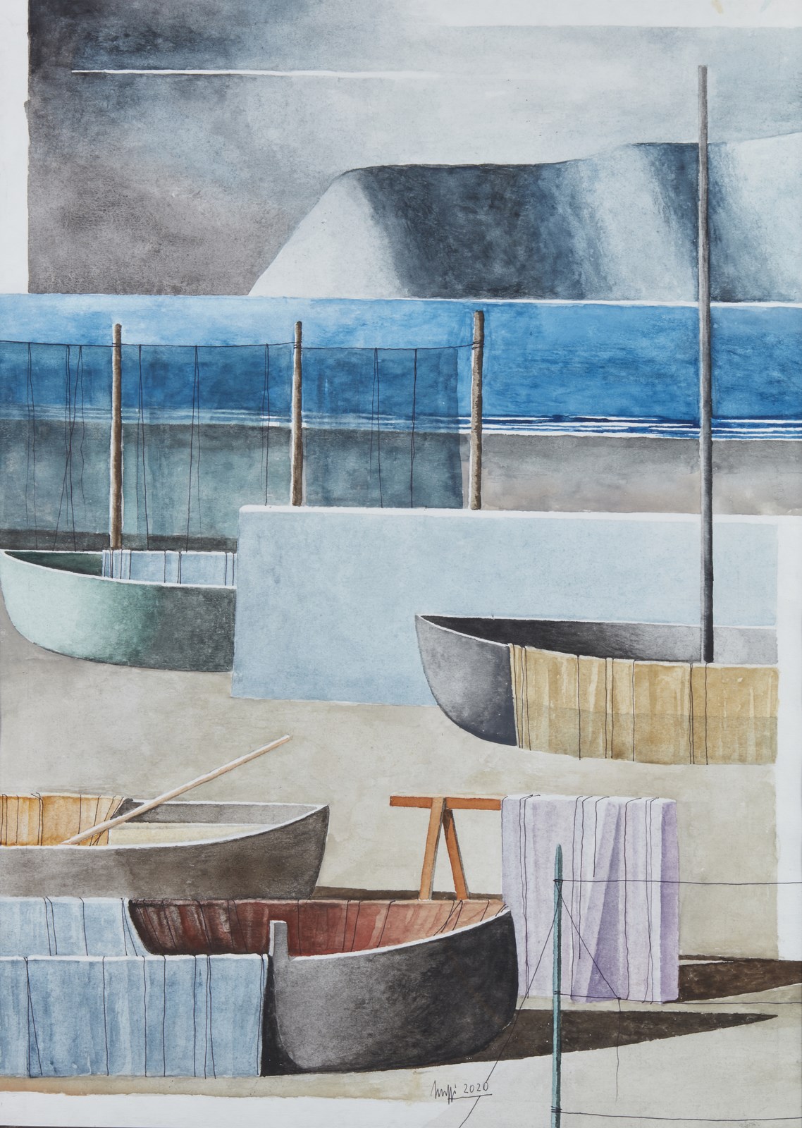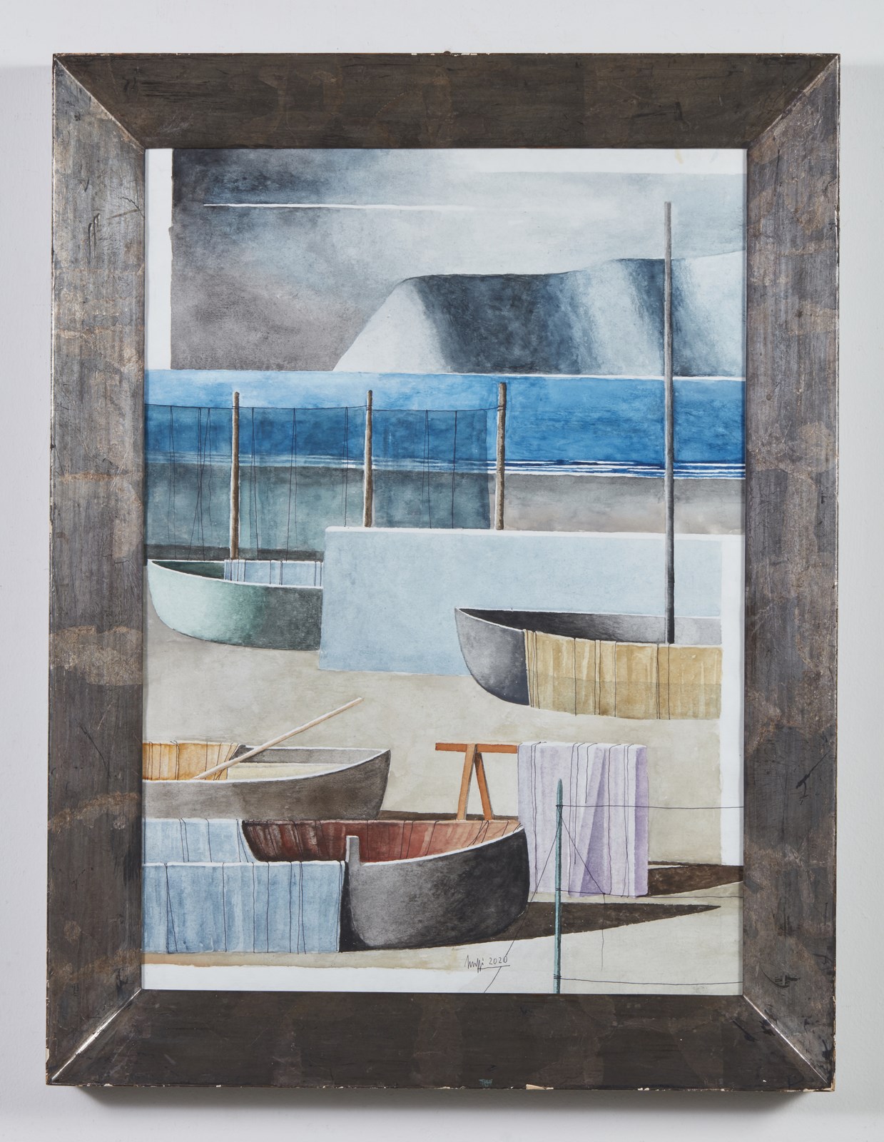 SCUFFI MARCELLO (n. 1948) Senza titolo. 2020. Tecnica mista su carta. Cm 50,00 x 70,00. Firma e anno in basso a destra. Autentica su fotografia di Luciano Scuffi. Cornice presente