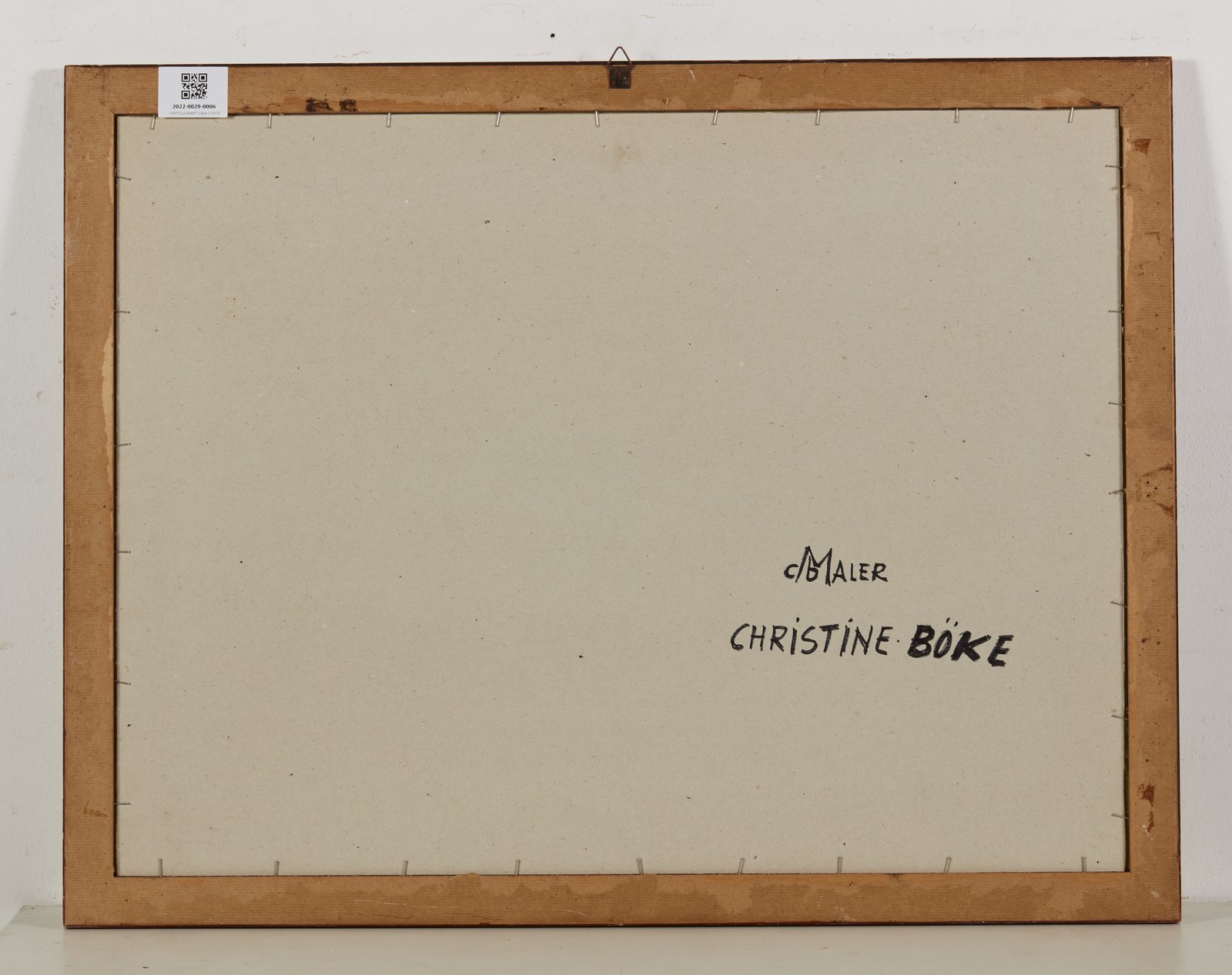 BOKE CHRISTINE (n. 1953) Senza titolo. Olio su cartone. Cm 77,00 x 57,50. Firma in basso a destra. Cornice presente