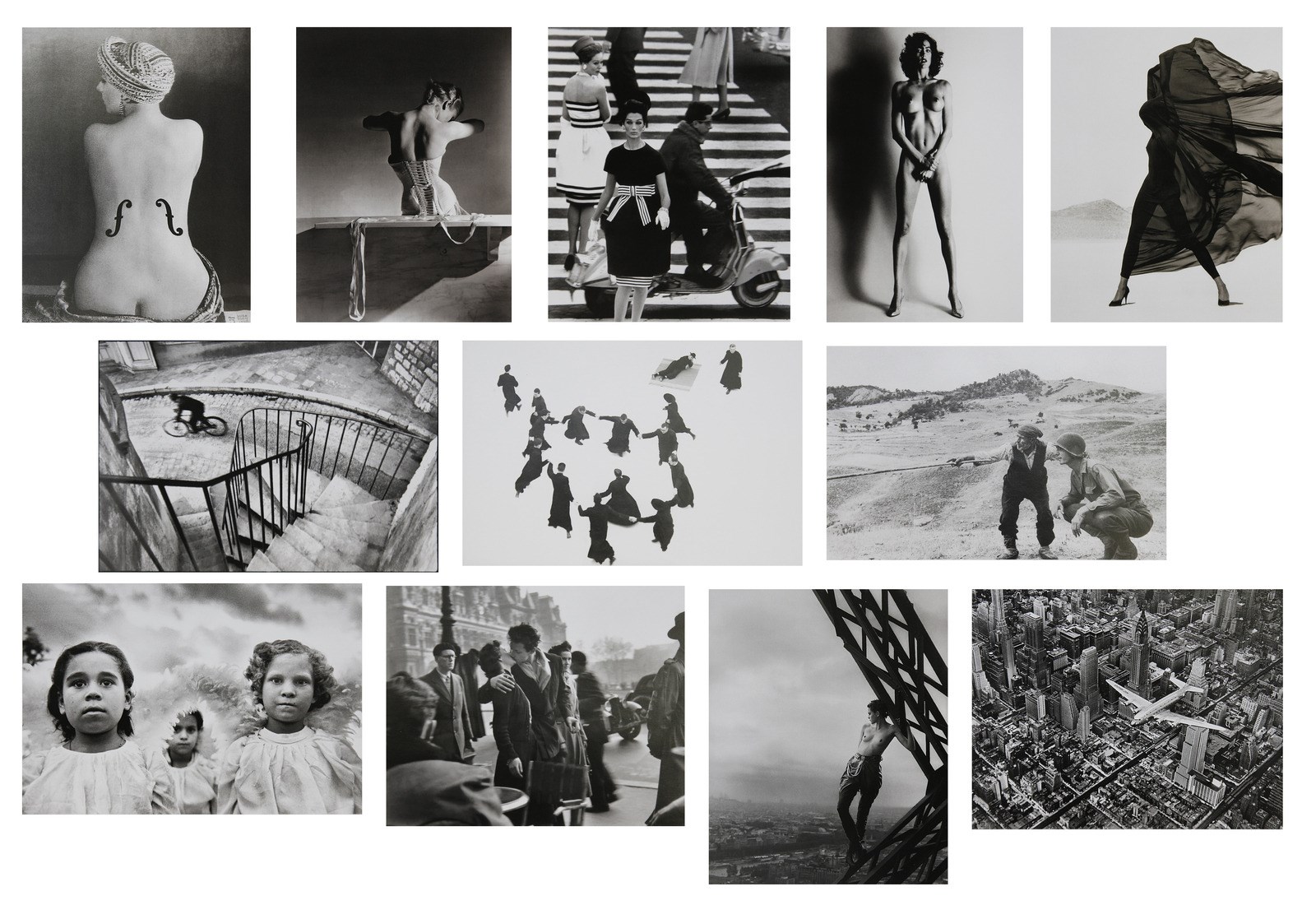ARTISTI VARI I grandi fotografi. Fotolitografia. Cm 32,00 x 42,00. Portfolio completo in edizione limitata di 12 fotolitografie dal 1924 al 1990. Editore: Corriere della Sera, Milano 2006. Elenco delle stampe: Man Ray: Ingre's Violin, 1924; Henri Cartier-Bresson: Hyères, France, 1932; Horst P. Horst: Mainbocher Corset, Paris, 1939; Margaret Bourke-White: DC-4 Over Manhattan, 1939; Robert Capa: Near Troina. August, 1943; Robert Doisneau: Il bacio dell'Hotel de Ville, Paris, 1950; William Klein: Piazza di Spagna, Rome (Vogue), 1960; Mario Giacomelli: Young priests, 1961; Sebastiao Salgado: First Communion, Brazil, 1981; Helmut Newton: Big Nude III, Henrietta, Paris, 1983; Peter Lindbergh: Mathilde on Eiffel Tower, Paris, 1989; Herb Ritts: Versace, Veiled Dress, 1990. Non presente confezione originale.