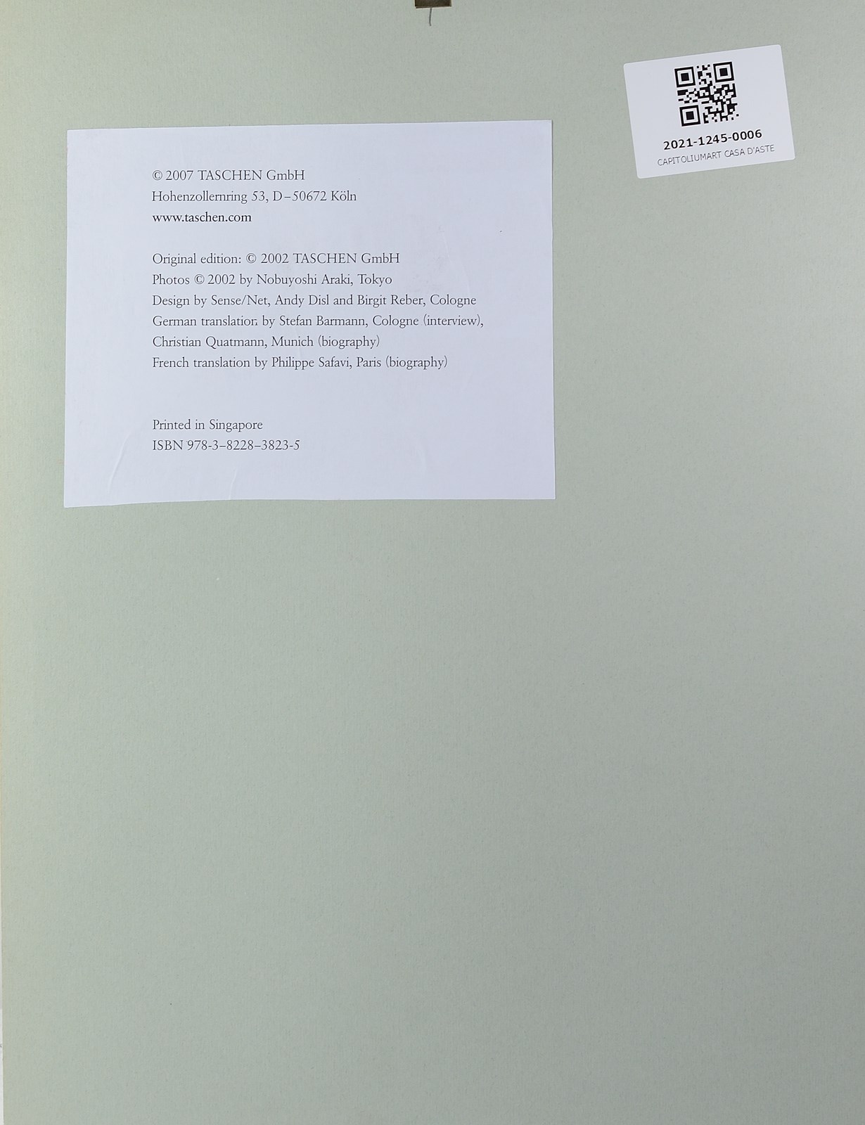 ARAKI NOBUYOSHI (n. 1940) Senza titolo. 2007. Fotolitografia. Cm 19,50 x 29,50. Lotto proveniente dal volume Un Grande Araki, Ed. Taschen, 2007 con tiratura limitata in 2500 copie. Il libro racchiude più di 1000 immagini. Cornice presente