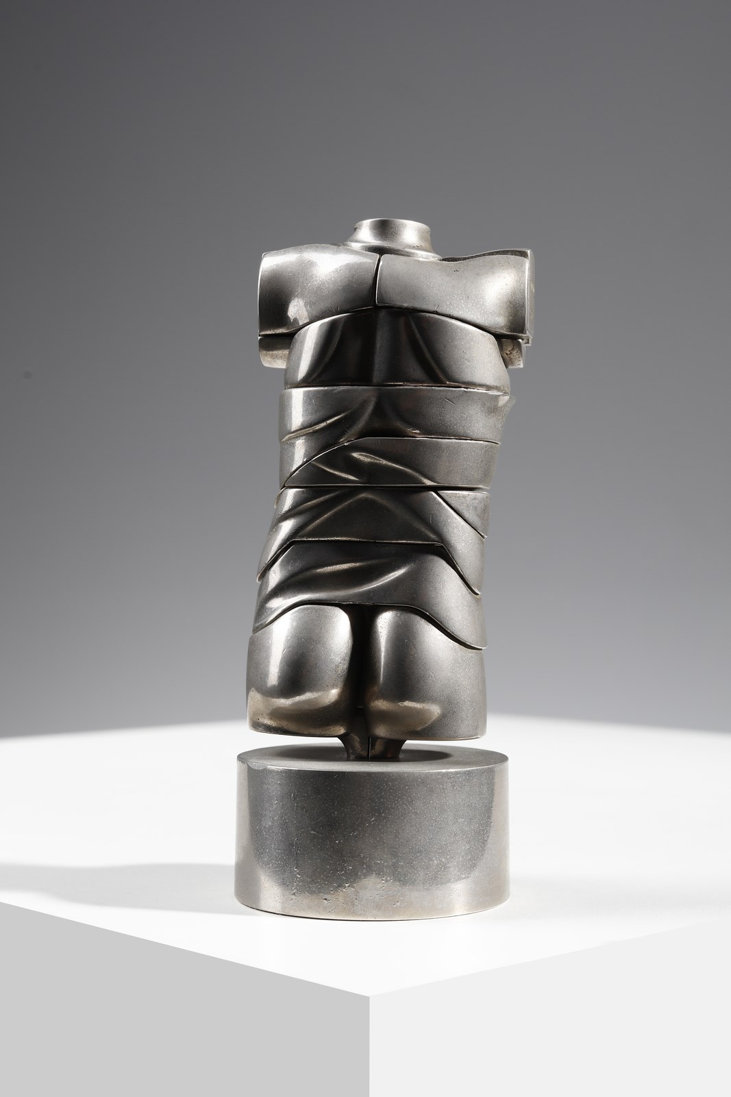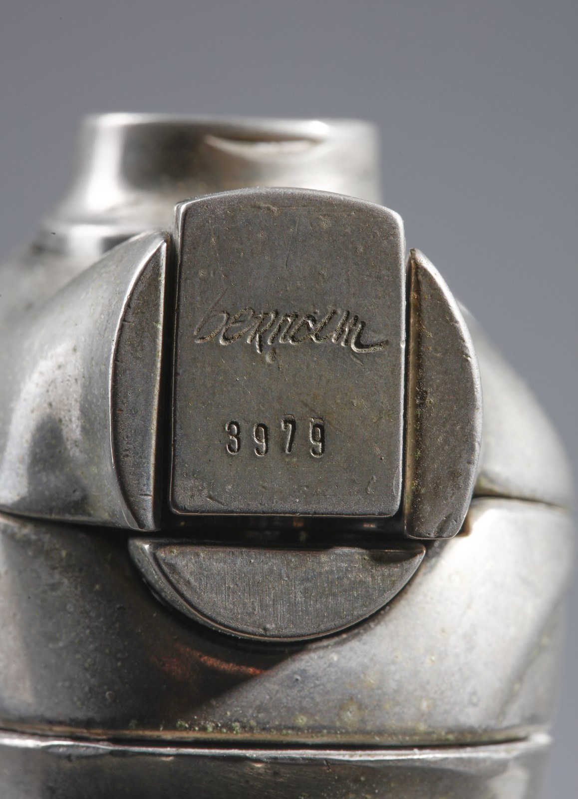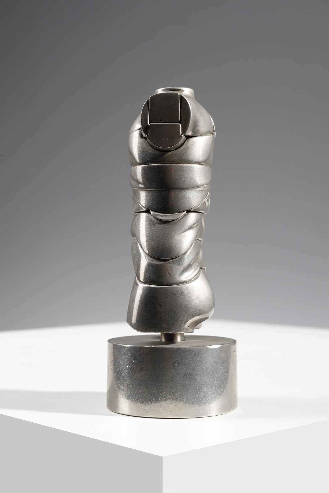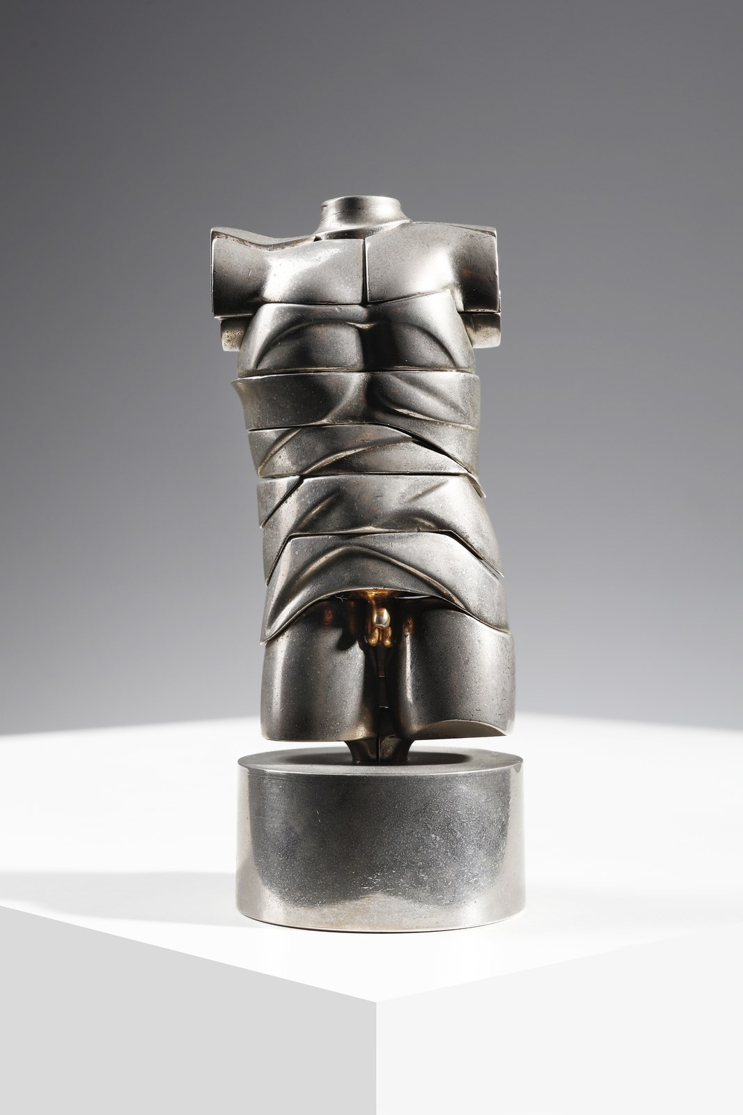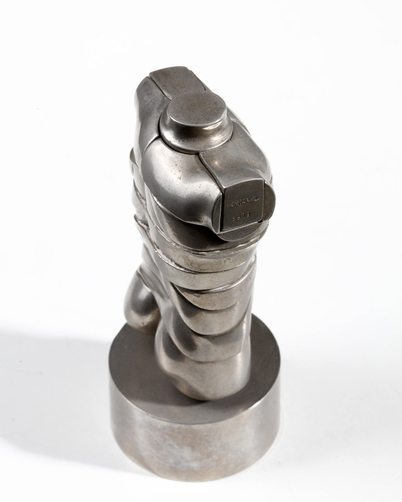 BERROCAL MIGUEL ORTIZ (1933 - 2006) Mini - Davide. 1968. Acciaio e ottone.. Cm 5,50 x 14,00 x 5,00. Es.3979. Firma e anno incise in alto. Dalla serie Micro - multiples: scultura smontabile composta da 22 elementi, uno dei quali è un anello. Dimensioni senza base: 10x5.4x3.6 cm. Edizione totale: 6 esemplari in oro fino a 18k ; firmati ( con un timbro speciale per le opere in oro) e numerati da I a VI. 500 esemplari in lega di alluminio, placcati in oro con una gemma di lapislazzuli nell'anello, relizzati per le Edizioni " Le Soleil Noir", Parigi. 9500 esemplari in lega d'alluminio nichelati, l'anello ha una gemma in agata verde, le sculture sono firmate e numerate + Edizione in resina sintetica in cui l'anello è sostituito da un elemento differente.