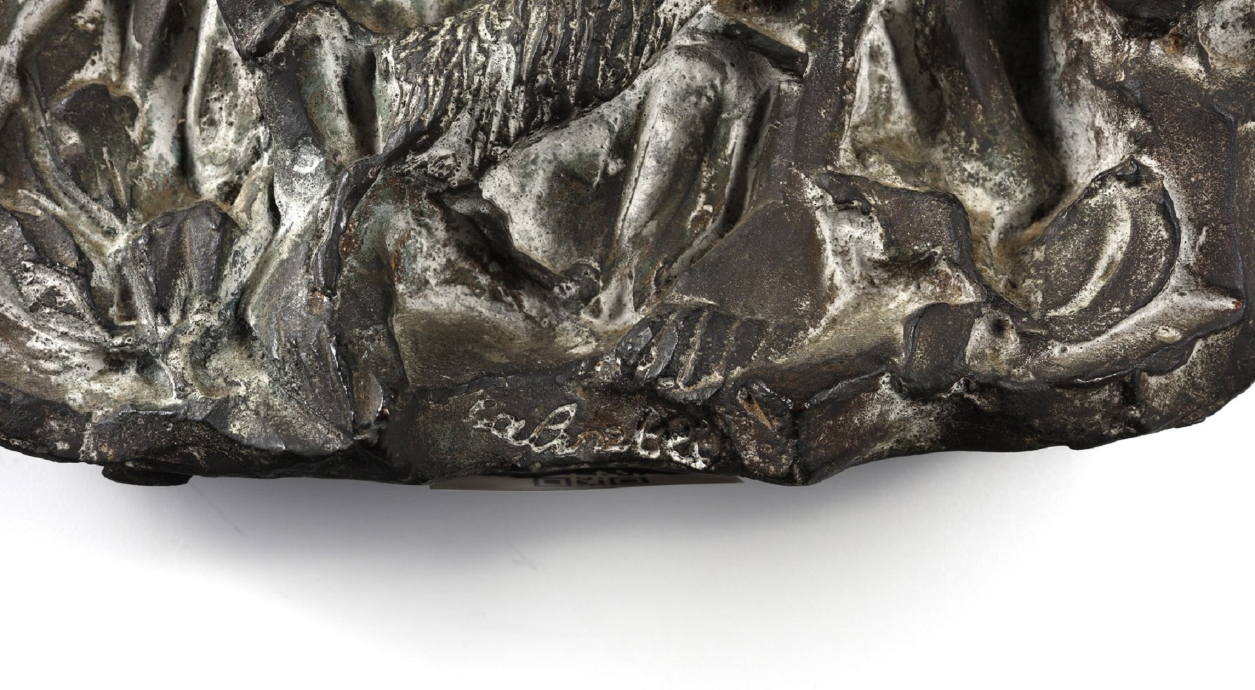 CALVELLI ETTORE (1912 - 1997) Senza titolo. Bronzo a patina bruna. Cm 26,00 x 43,00 x 10,00. Firma incisa in basso al centro.