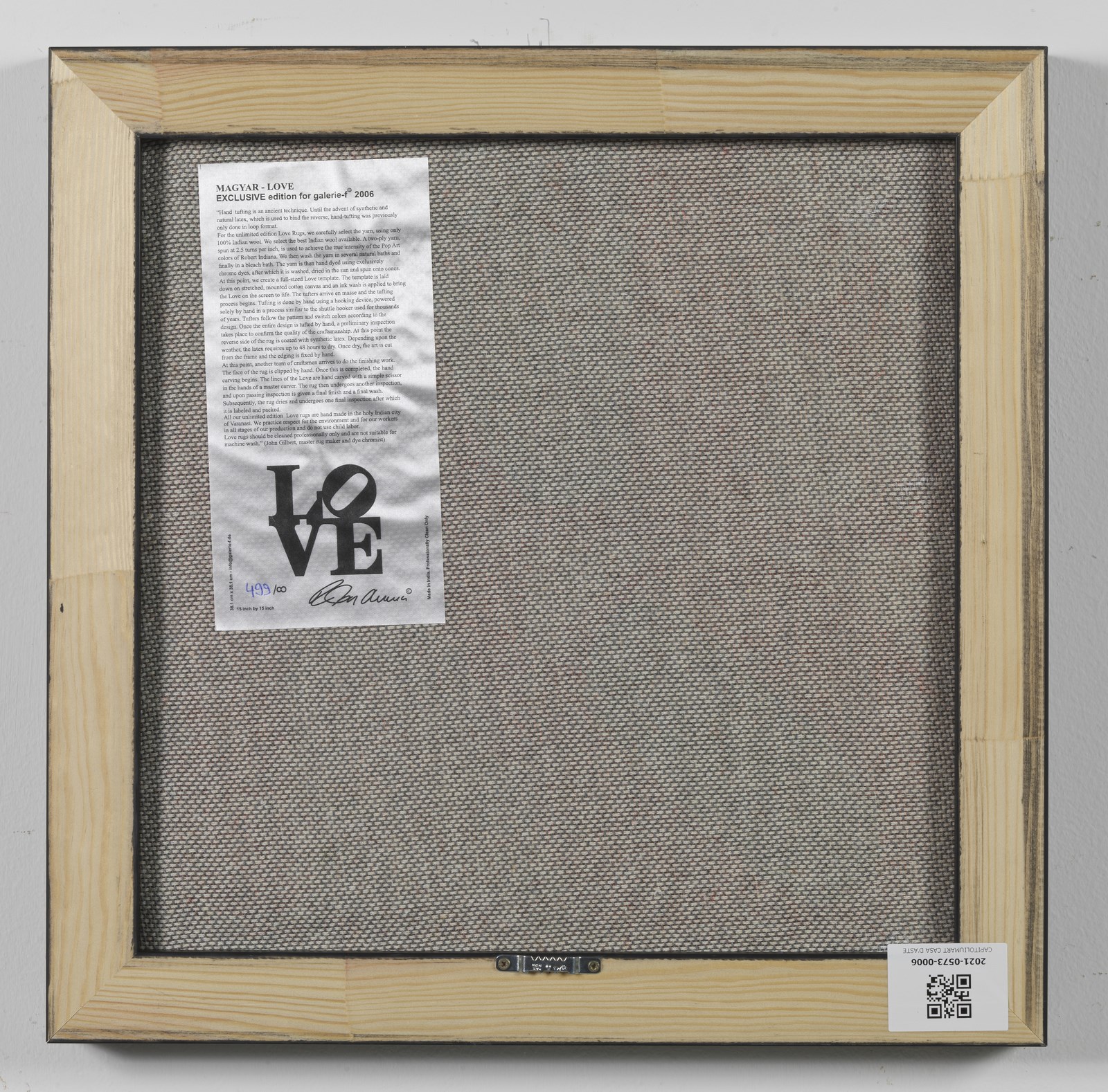 INDIANA ROBERT (1928 - 2018) Magyar Love. Tappeto. Cm 37,00 x 37,00. N.499. Al retro cartiglio descrittivo Galerie - F con tiratura e firma a stampa. Edizione esclusiva per Galerie - F, Kranenburg, 2006.