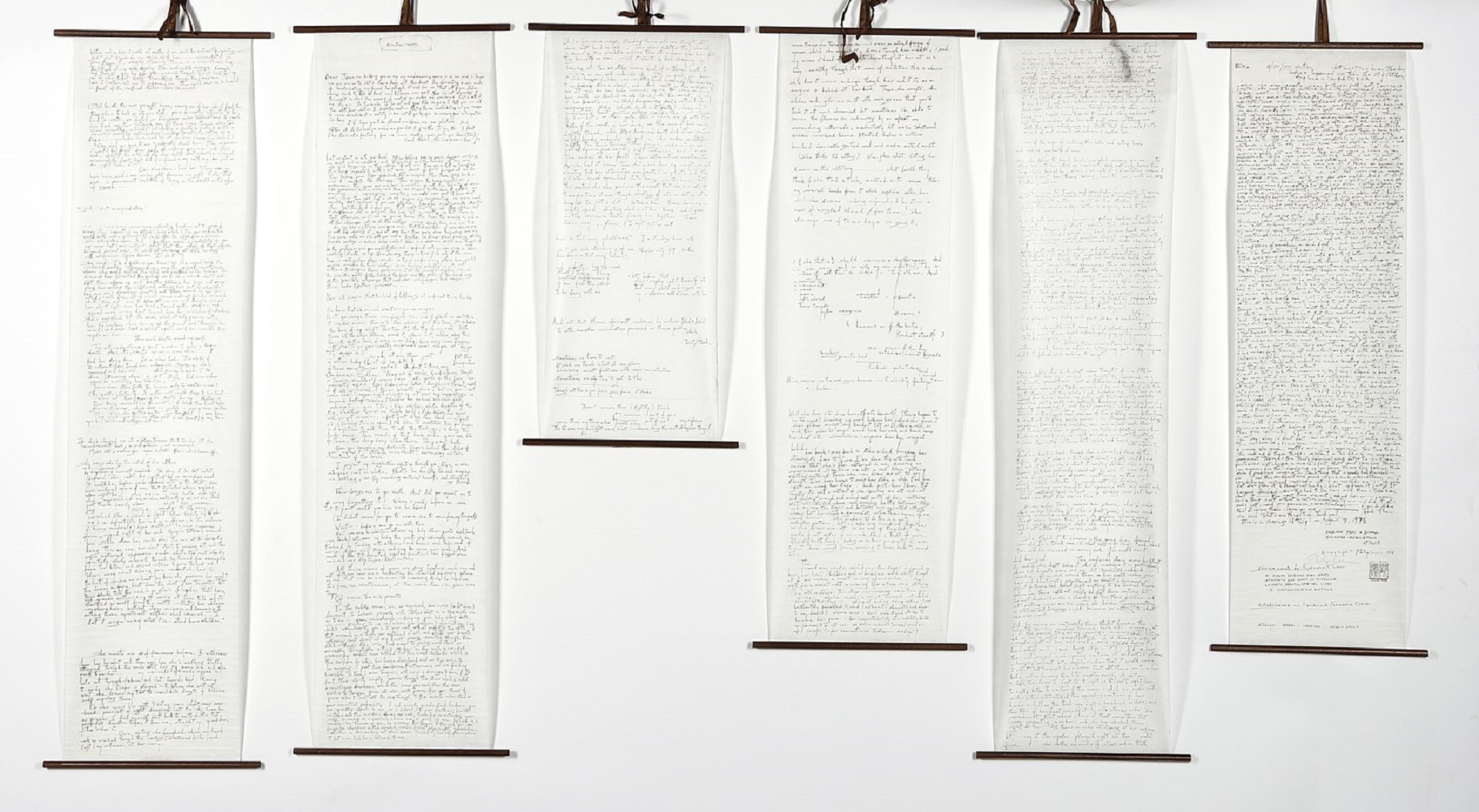 CORNER PHILIP (n. 1933) Real fantastic. Multiplo. Cm 20,00 x 30,00. Edizione Pari&Dispari, 1978. Libretto in 6 rotoli stampati in serigrafia su stoffa flisellina in colore oro.Ogni opera è costituita da un gruppo di sei pergamene. Esposizione: Women in Fluxus & Other Experimental Tales, 10 Novembre 2012 – 10 Febbraio 2013, Palazzo Magnani, Reggio Emilia.