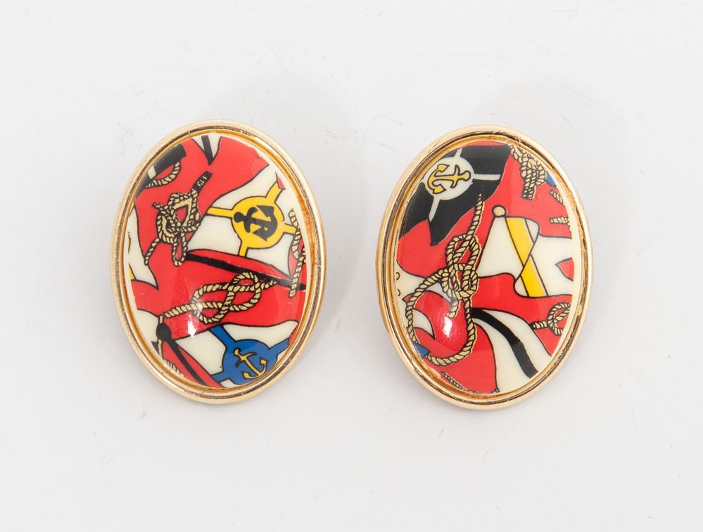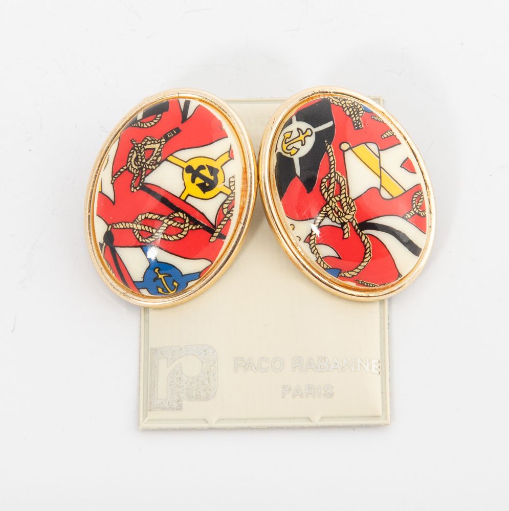 PACO RABANNE Orecchini a clips in metallo e pvc smaltato. Cm 3,2x2,4 cad....