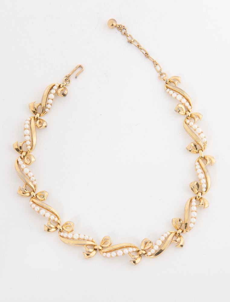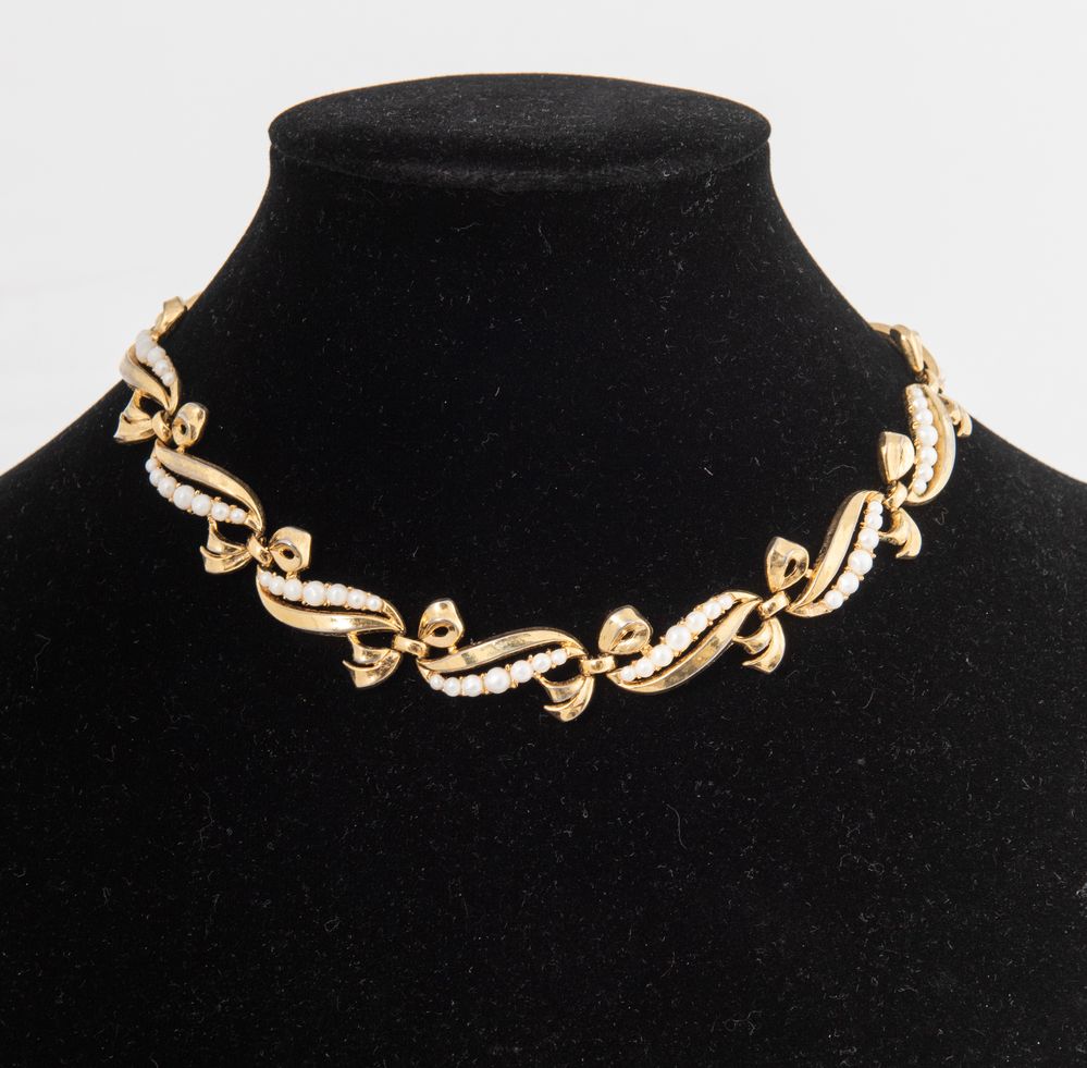 Lotto 13 | TRIFARI Collier girocollo in metallo dorato decorato con piccole perle...