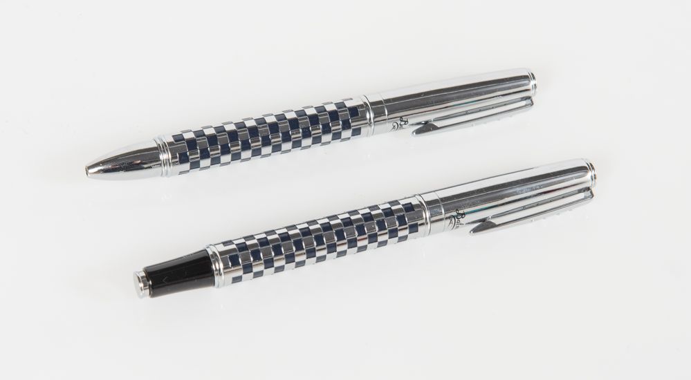 BALMAIN Set composto da due penne a sfere in metallo argentato e smaltato...