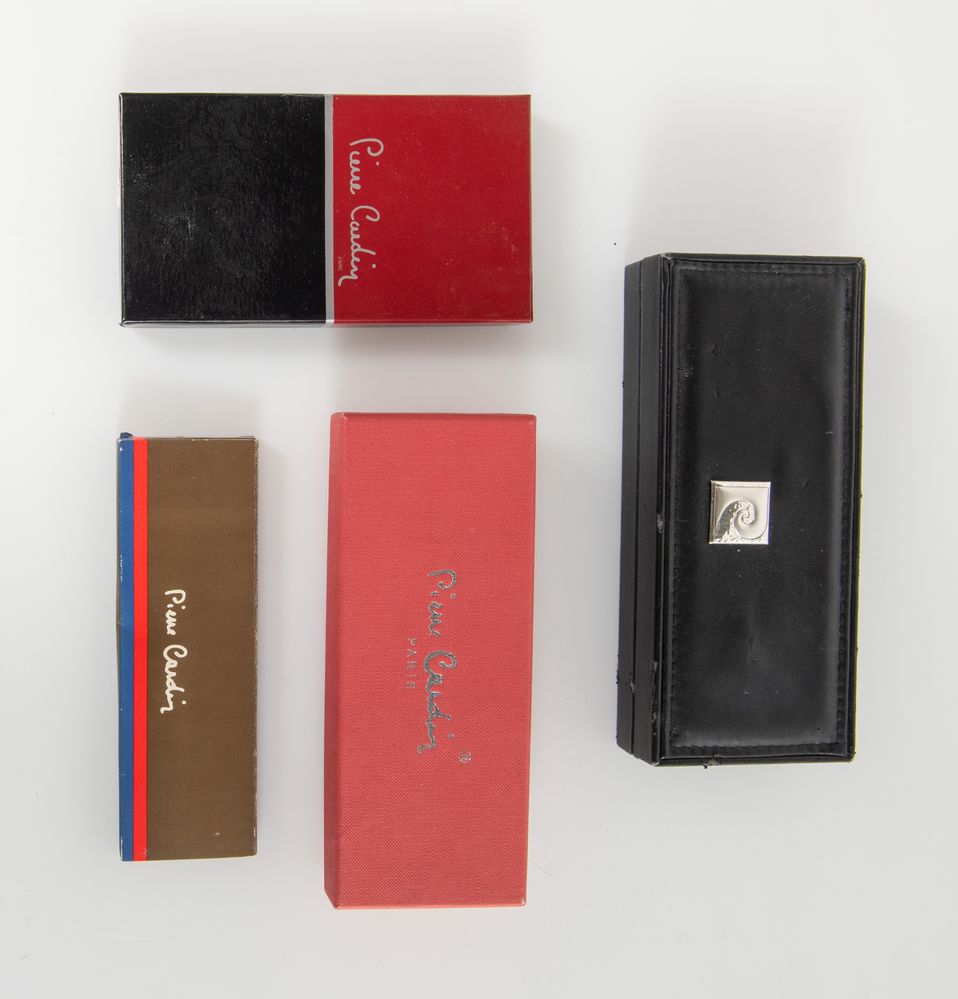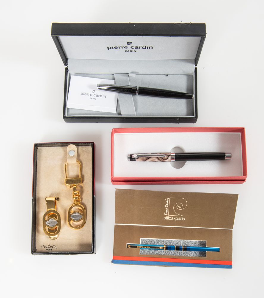 PIERRE CARDIN Lotto composto da tre penne e un set portachiavi e ferma banconote. Ciascuno corredato di scatola originale.
