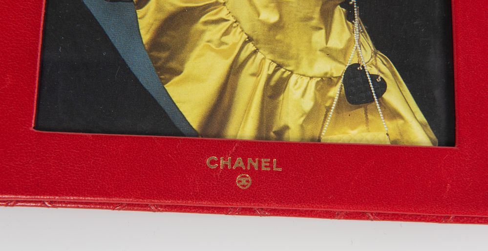 CHANEL Cornice/portafoto in pelle rossa liscia e lavorata a motivo...