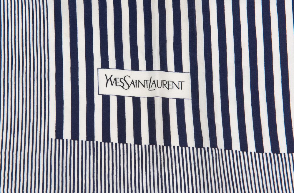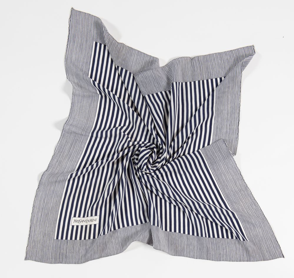 YVES SAINT LAURENT Foulard in seta con fantasia a righe bianche e blu. Cm...