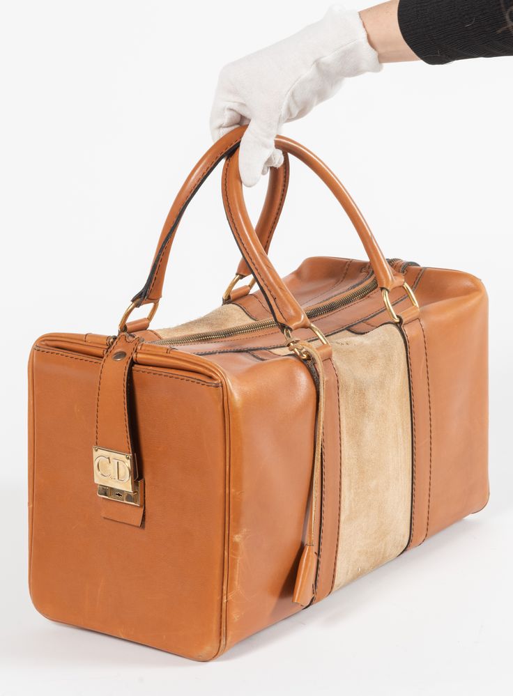 CHRISTIAN DIOR Borsa da viaggio in pelle liscia e scamosciata sui toni beige...